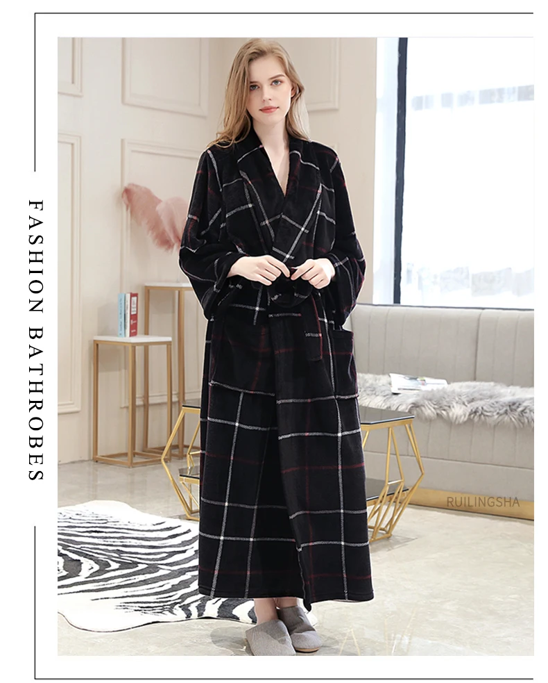 Халат фланелевый мужской, длинный, зимний, в клетку, 40-размера плюс кг, 130