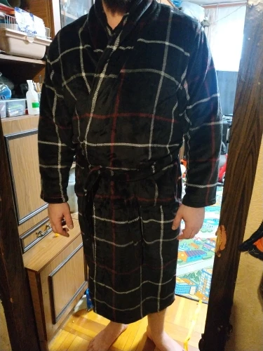 Покупала в подарок. Как подарю, дополню отзыв. А так на первый взгляд хороший, очень мягкий. Два минуса: электризуется, поэтому пришлось антистатиком попшикать, и коротковат все-таки. Он на рост 165 где-то. А вот на 183 см будет, наверное, короток.