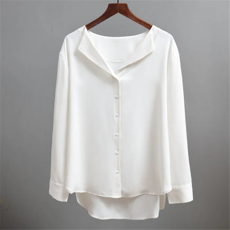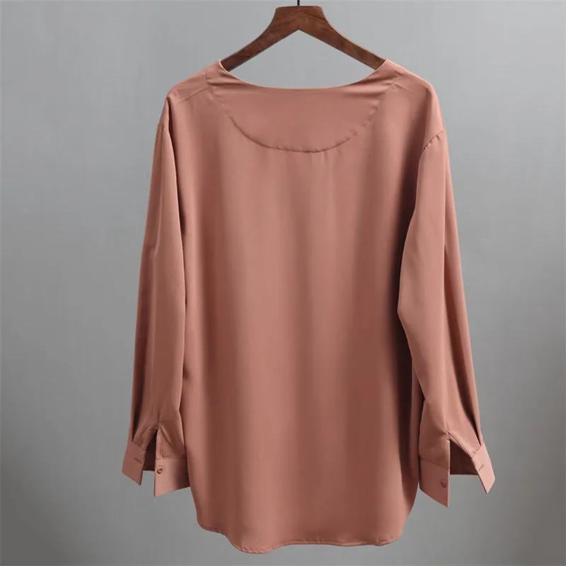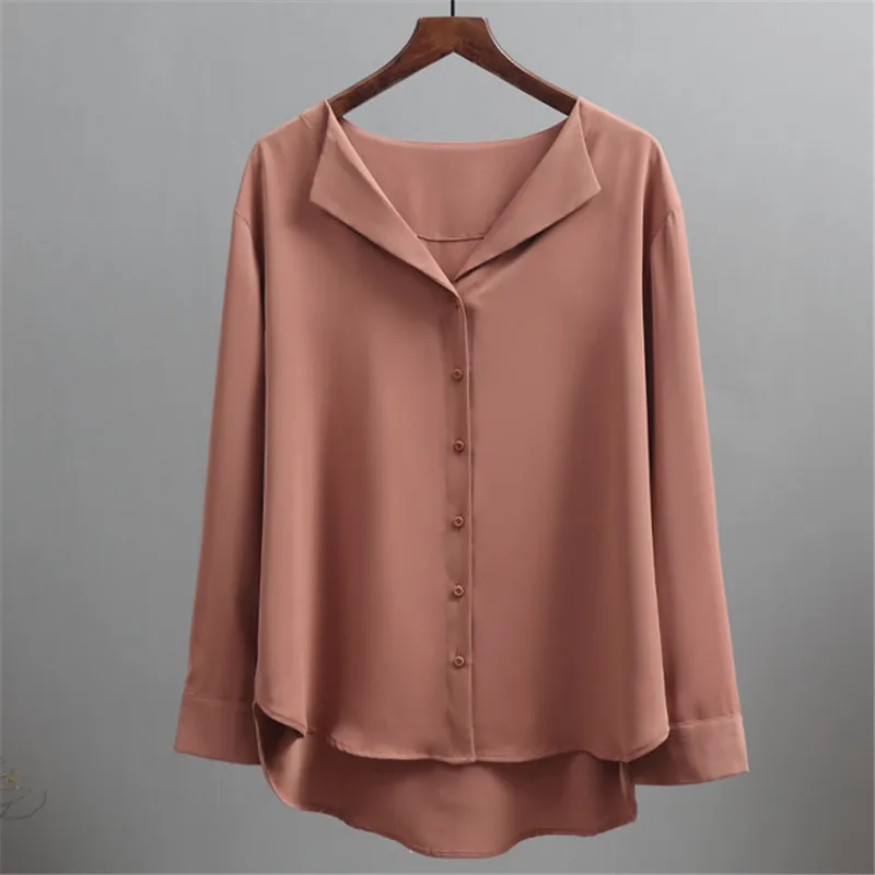 Женская шифоновая блузка с длинным рукавом и V-образным вырезом