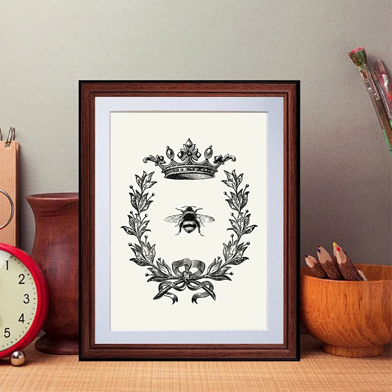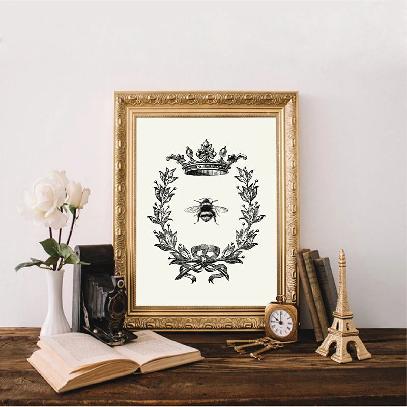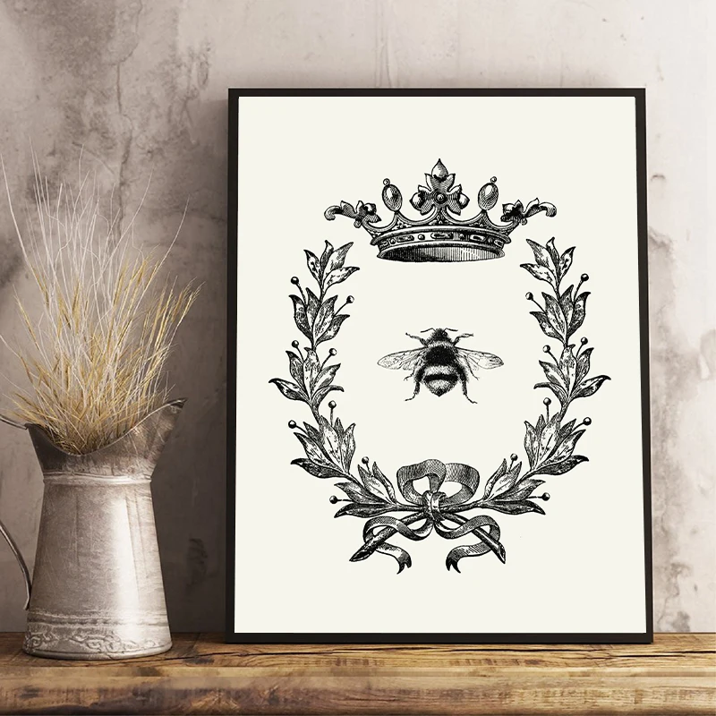 Картина в деревенском стиле с принтом пчелы королевы, Декор для дома, винтажный плакат с изображением пчелы и венка, французский кантри, домашний художественный холст, живопись