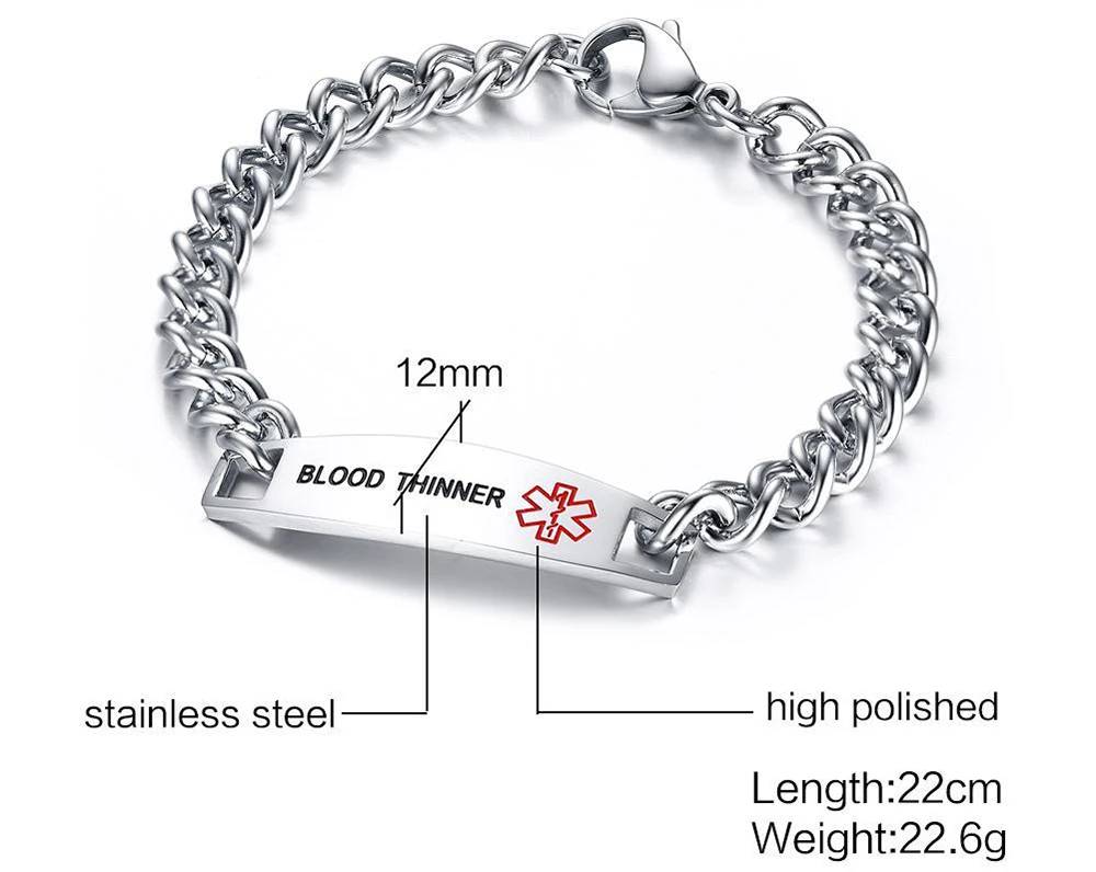 TTVOVO медицинский браслет из нержавеющей стали, аварийный медицинский браслет, браслет-цепочка, идентификация, ювелирные изделия, подарок