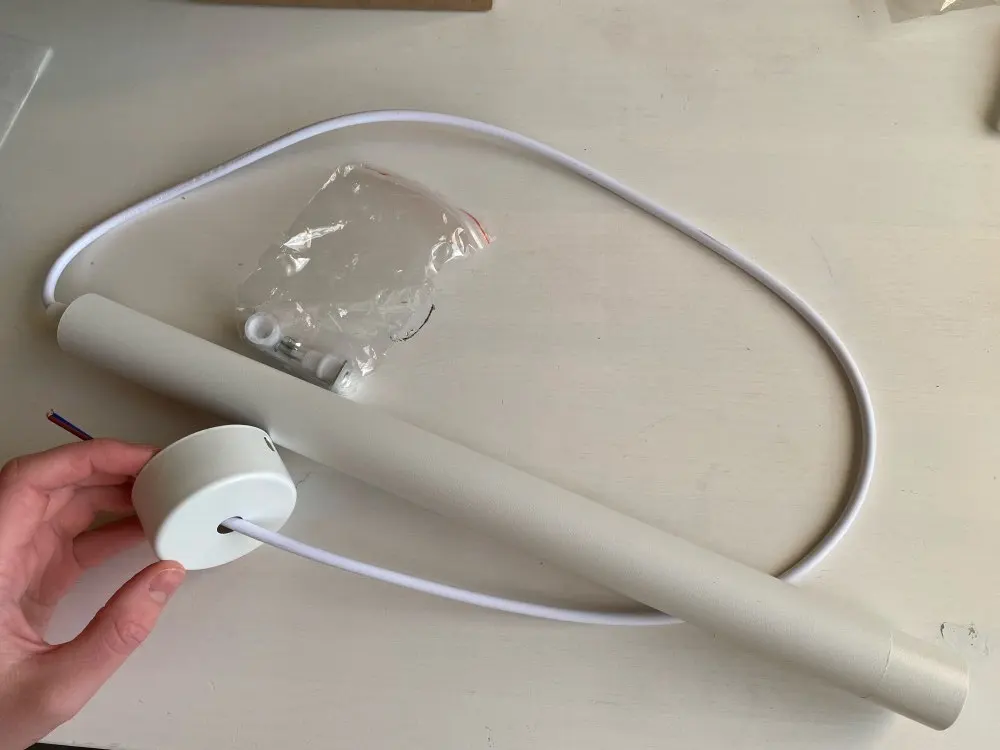упаковано слабовато, весь картон помят, но хорошо что не сломалось ни чего... пришлось разбирать и переворачивать фиксатор провода, неправильно одет. на маленьком светильнике замыкала пайка проводов, исправили ножом
