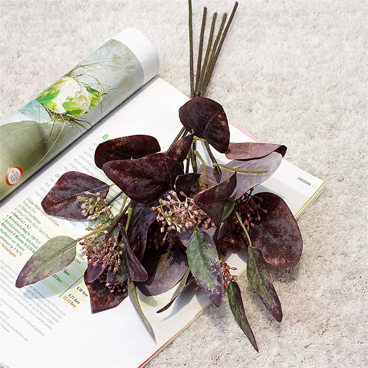 Искусственные листья эвкалипта ручной работы 5 веток фруктов овальные рождественские украшения для дома Искусственные цветы зеленые растения Трава