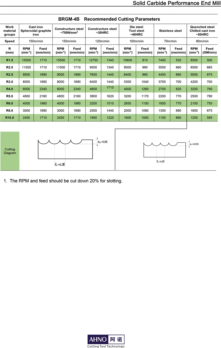 Концевые фрезы AHNO 100% из карбида вольфрама с 4 канавками для фрезерного станка с ЧПУ HRC55