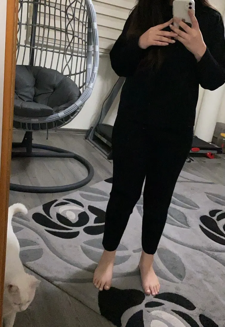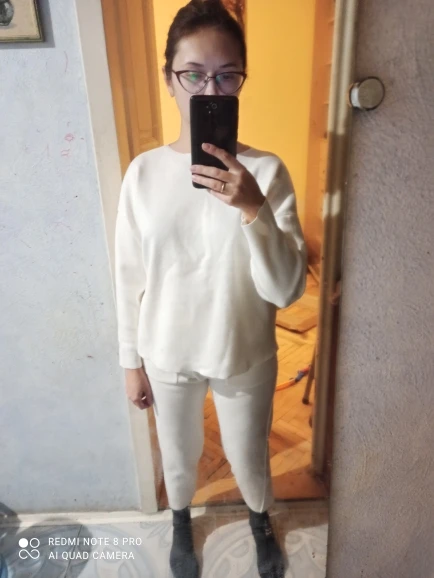 Заказал Размер S для моего 150 см, 50 кг, 86-60-86 см. Брюки короткие, но для меня, я тонкий, это не выглядит хорошо на мне. Свитер также большой и большой. Выглядит модно вместе, но я думаю, что лучше смотрится на высоких девушках, более 170 см. Доставка является нормальной длинной и с номером отслеживания. Много!