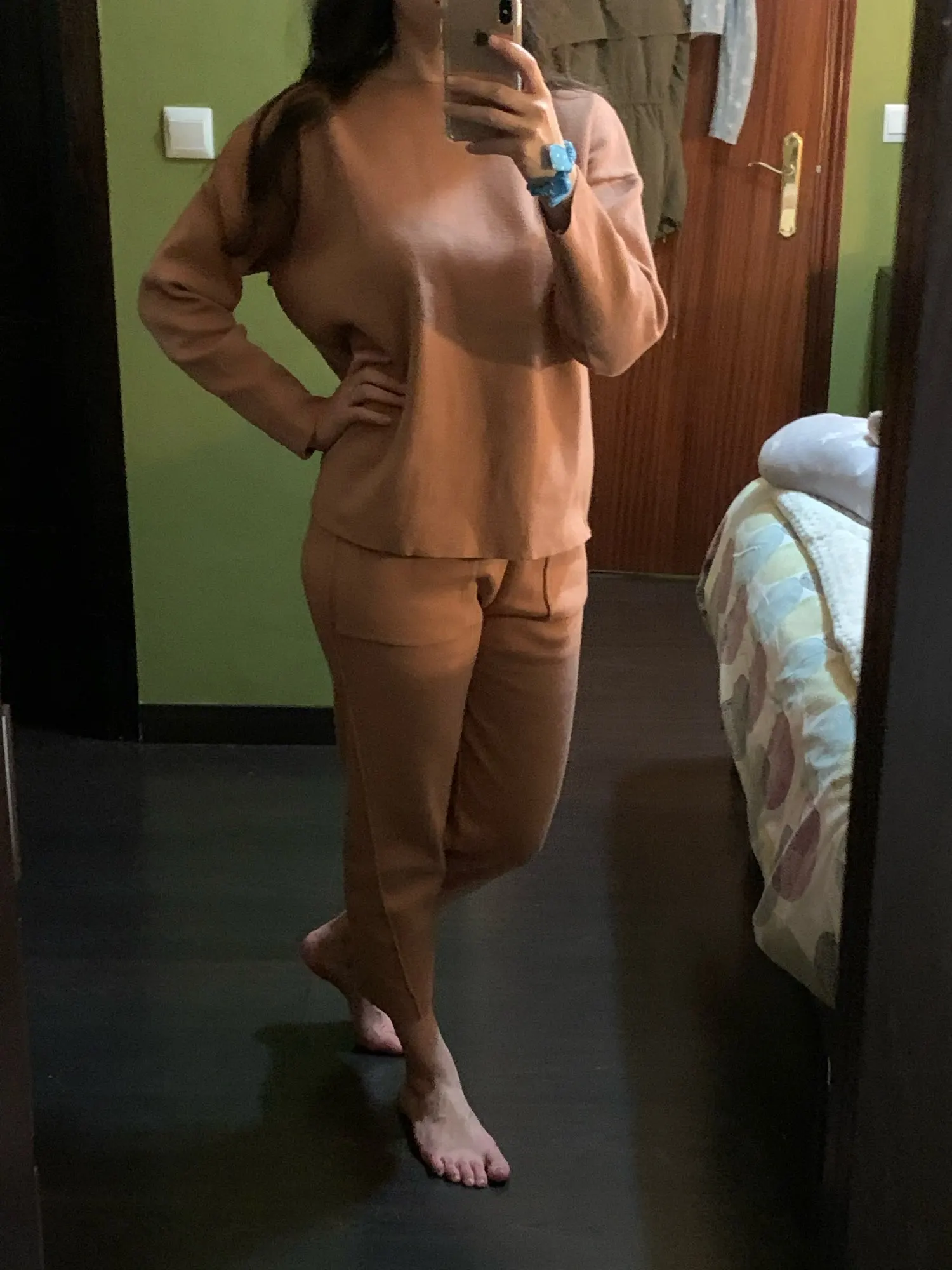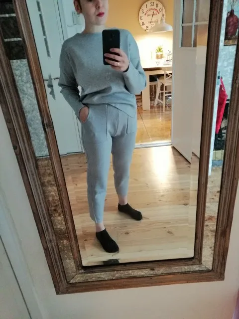 Для того, чтобы получить комплект, потребовался всегда! Однако, как только он прибыл, я быстро влюбилась в него. Материал приятный, тонкий и приятный. Определенно один из моих любимых наборов домашней одежды с этого момента. Остерегайтесь: модель немного меньше, чем обычно. На рост (165 см); Размер L; Брюки длиной до щиколотки.