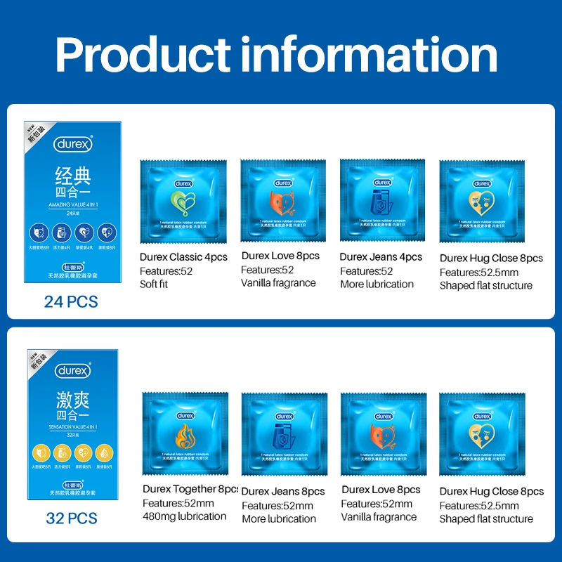 Презервативы Durex из натурального латекса, 4 типа, ультратонкие, со смазкой