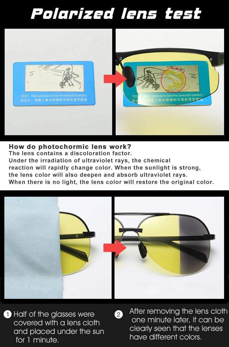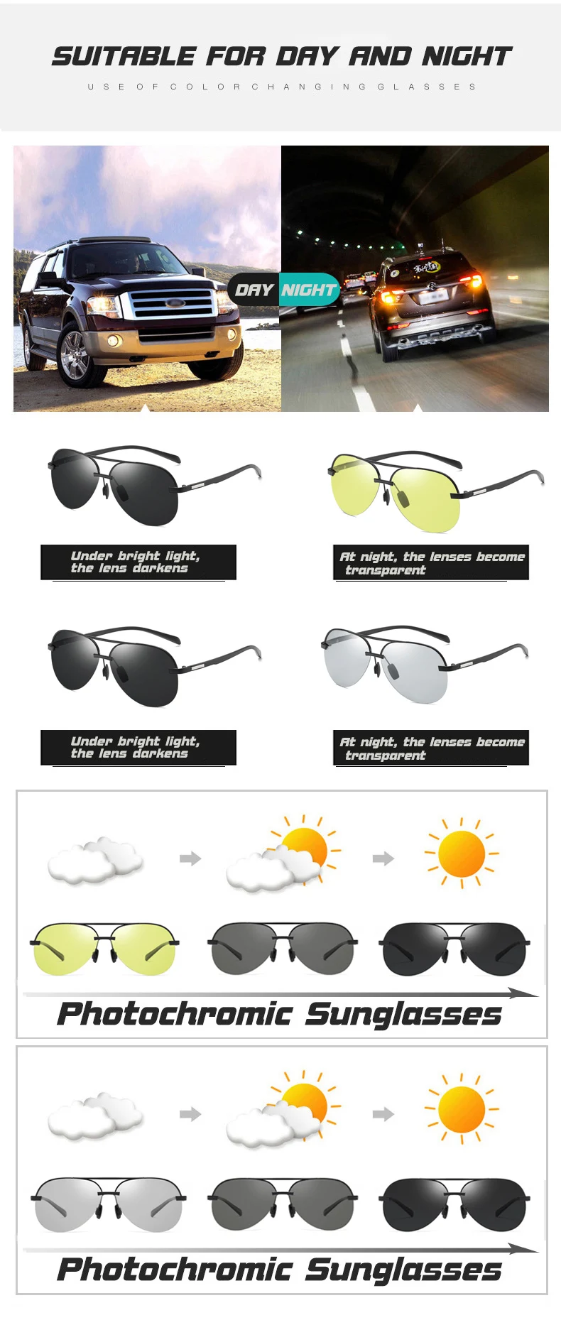 Солнцезащитные очки-авиаторы поляризационные UV400 для мужчин и женщин, фотохромные брендовые, для дневного и ночного видения, для вождения