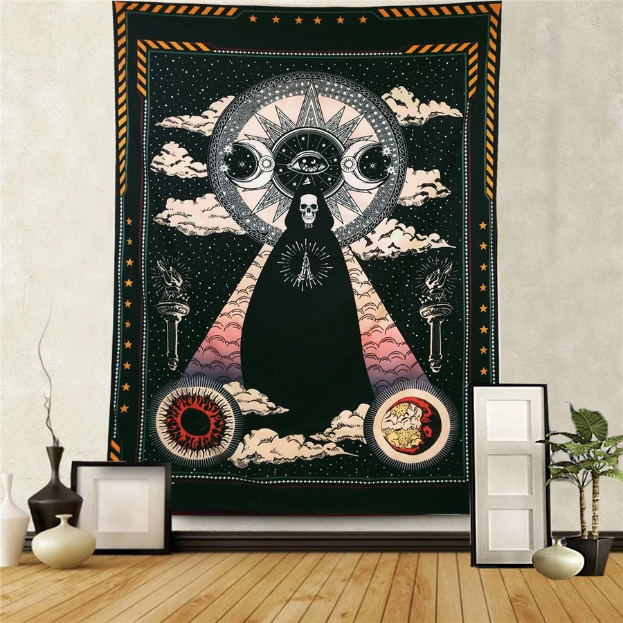 Настенное одеяло в стиле хиппи с черепом Таро, психоделический гобелен, Настенная подвесная мандала, Луна, звездное украшение в стиле бохо, ковер настенный гобелен из ткани