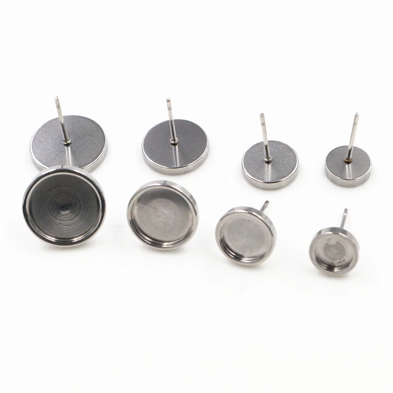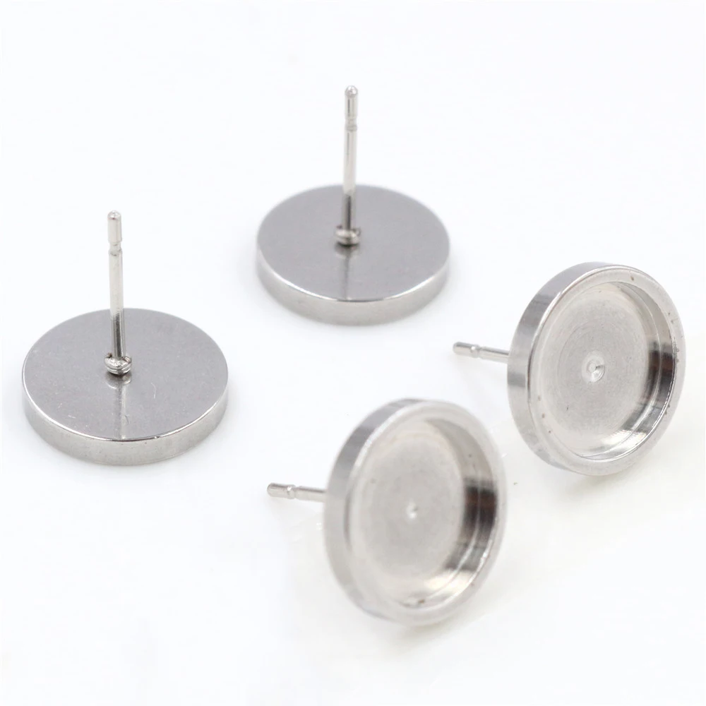 (Никогда не выцветает) 6, 8, 10, 12 мм, 10 шт.лот, утолщенные серьги-гвоздики из нержавеющей стали, пустыеоснова для сережек, подходят для стеклянных кабошонов 6, 8, 10, 12 мм