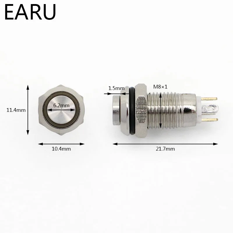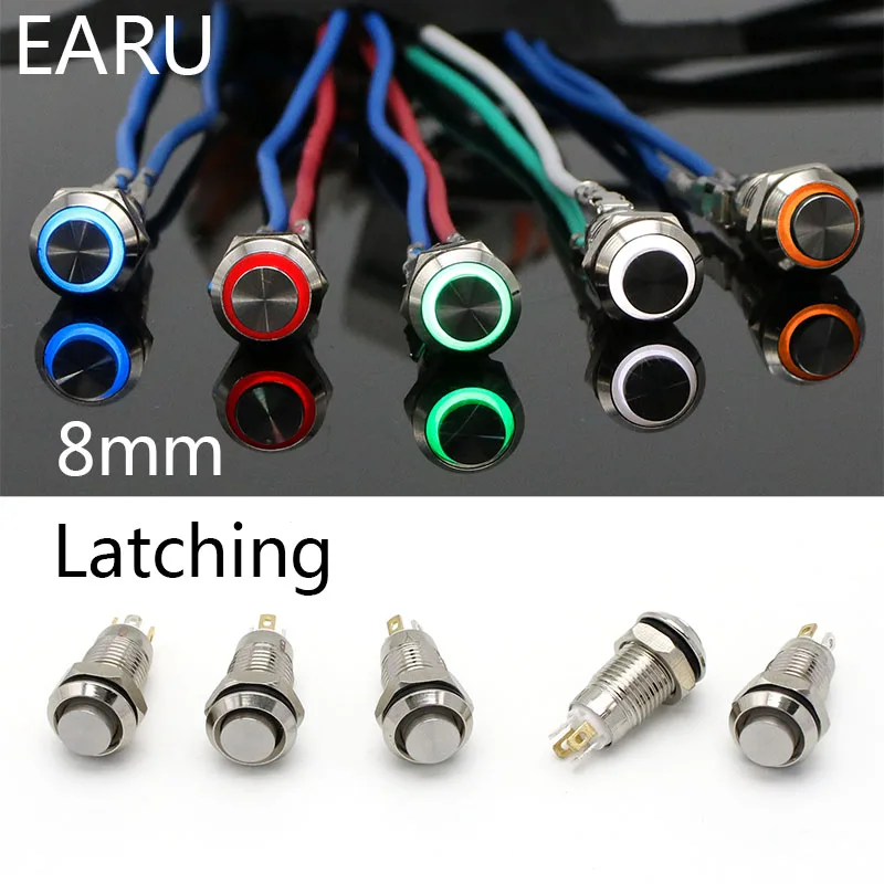 Водонепроницаемая фиксация выключатель из нержавеющей стали с металлической кнопкой, 8 мм, 3 в, 5 В, 12 В, 24 В