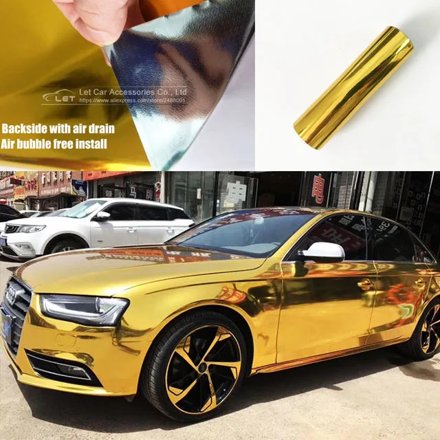 Новый высокоэластичный водонепроницаемый УФ защищенный Золотой хромированный зеркальный винил обертывание лист рулон клеящеяся пленка для автомобиля виниловая самоклеящаяся пленка