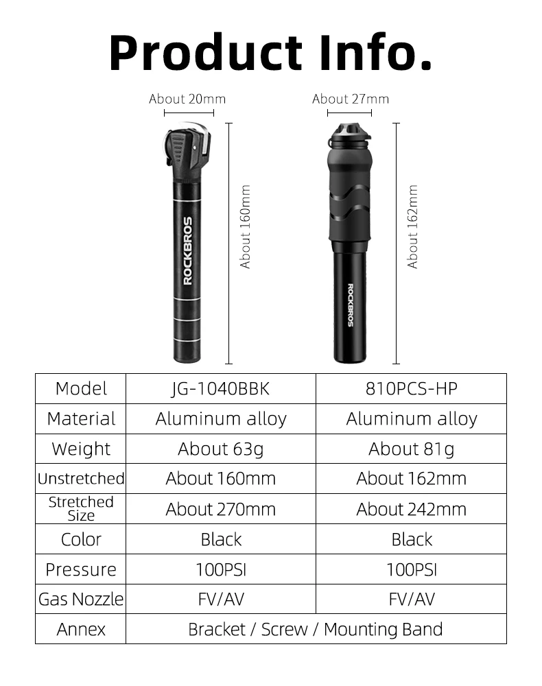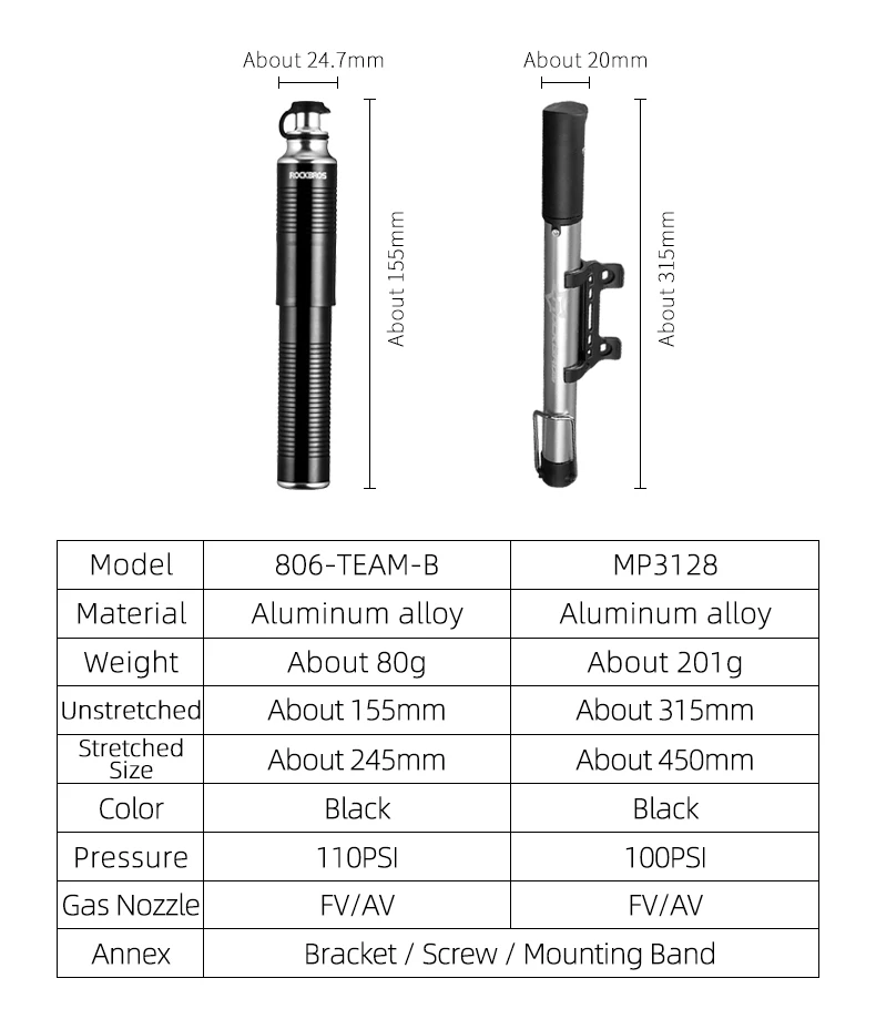 Велосипедный насос ROCKBROS, светильник легкий мини-насос из алюминиевого сплава, с клапаном