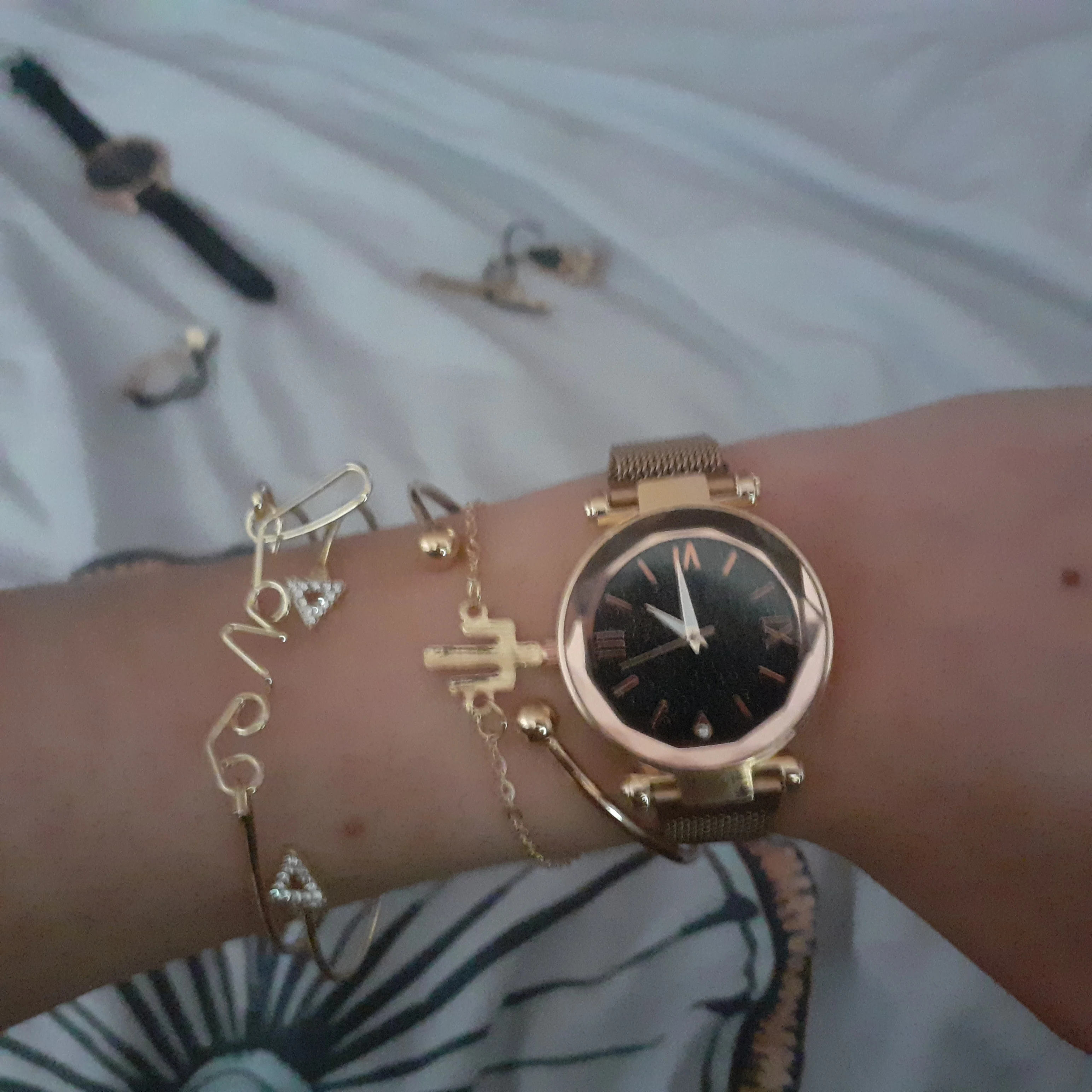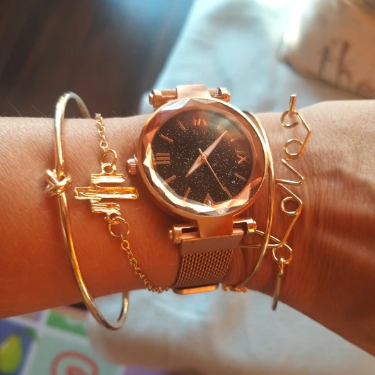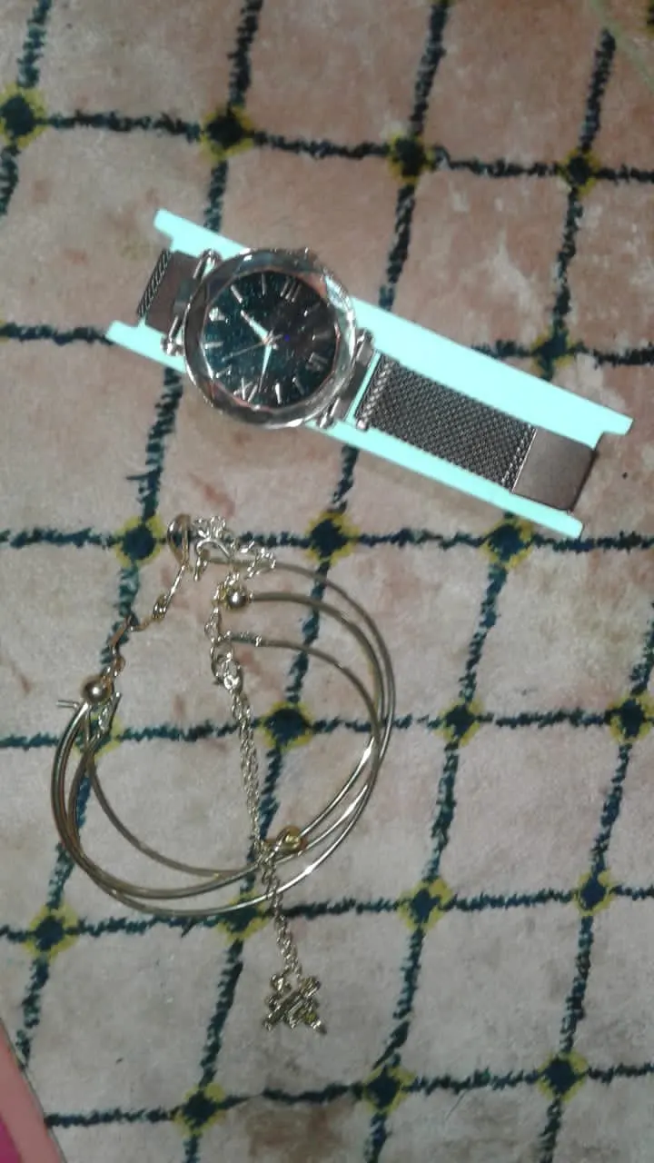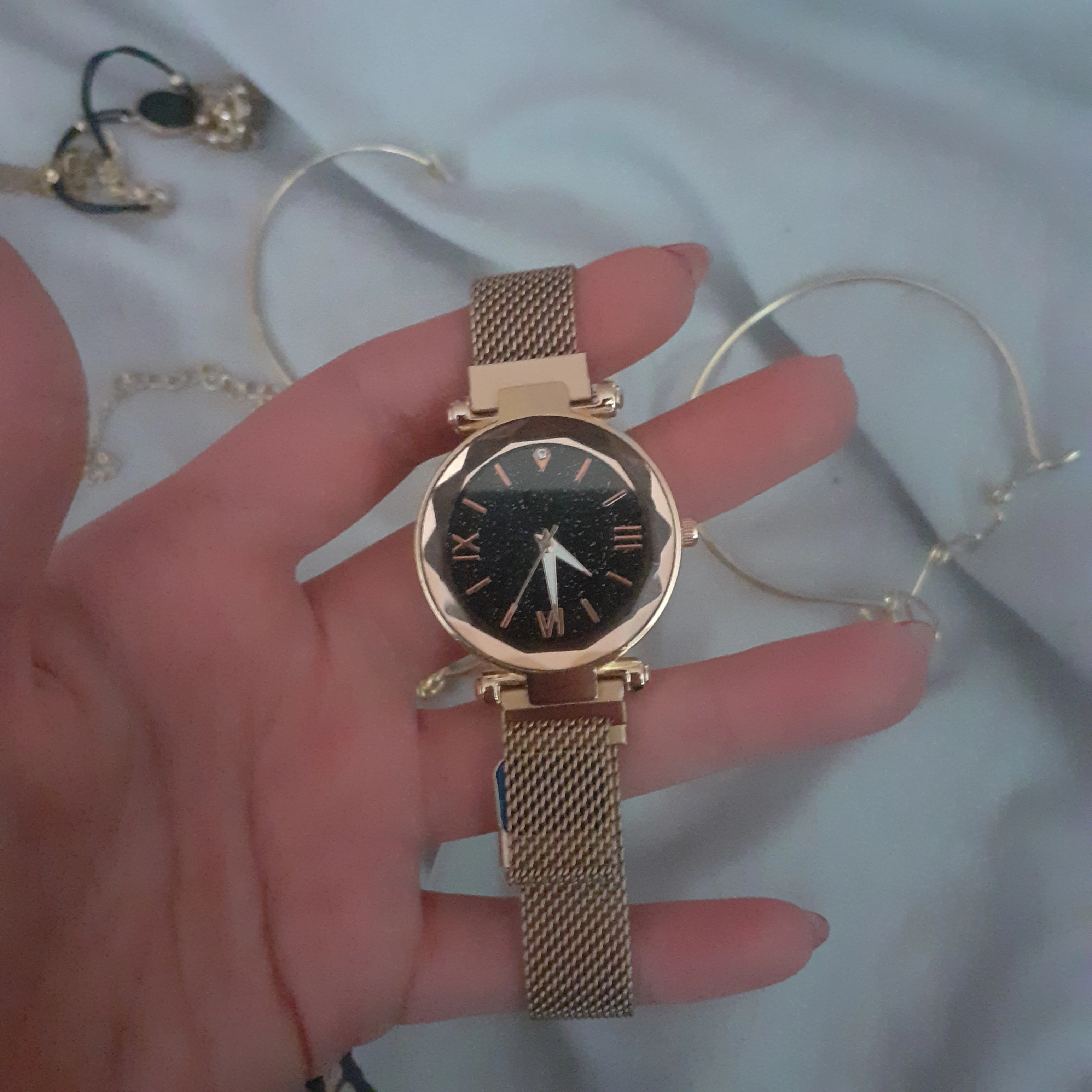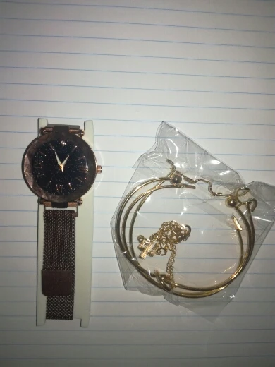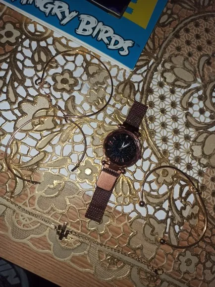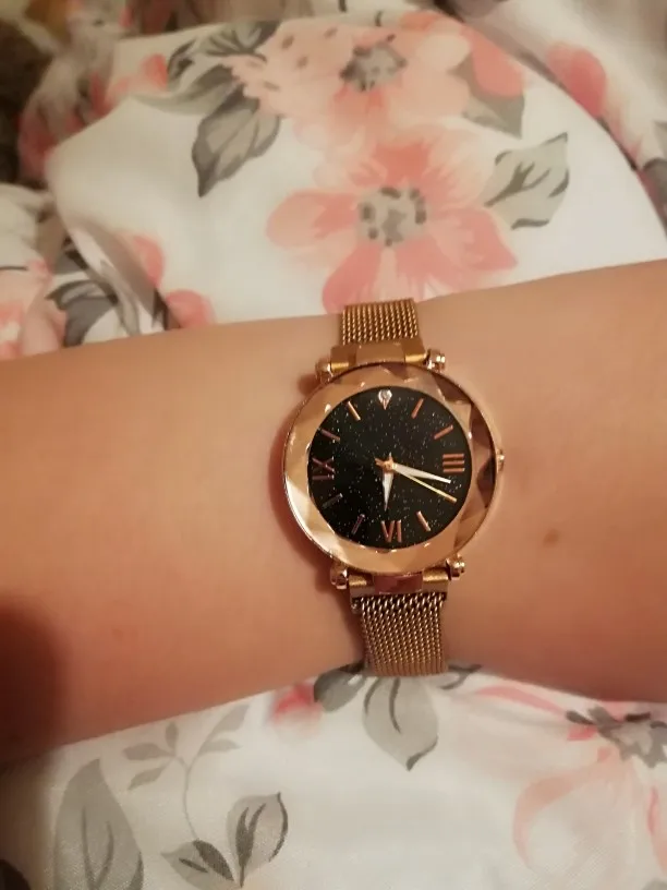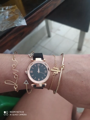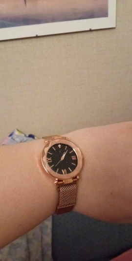 Супер часы, все работают, пожалуйста. Очень хорошо, что регулируемый ремешок с магнитом, с этими часами не падают. Хорошо удерживает магний. Браслеты также изготовлены из шифона. Я рад, что рекомендую
