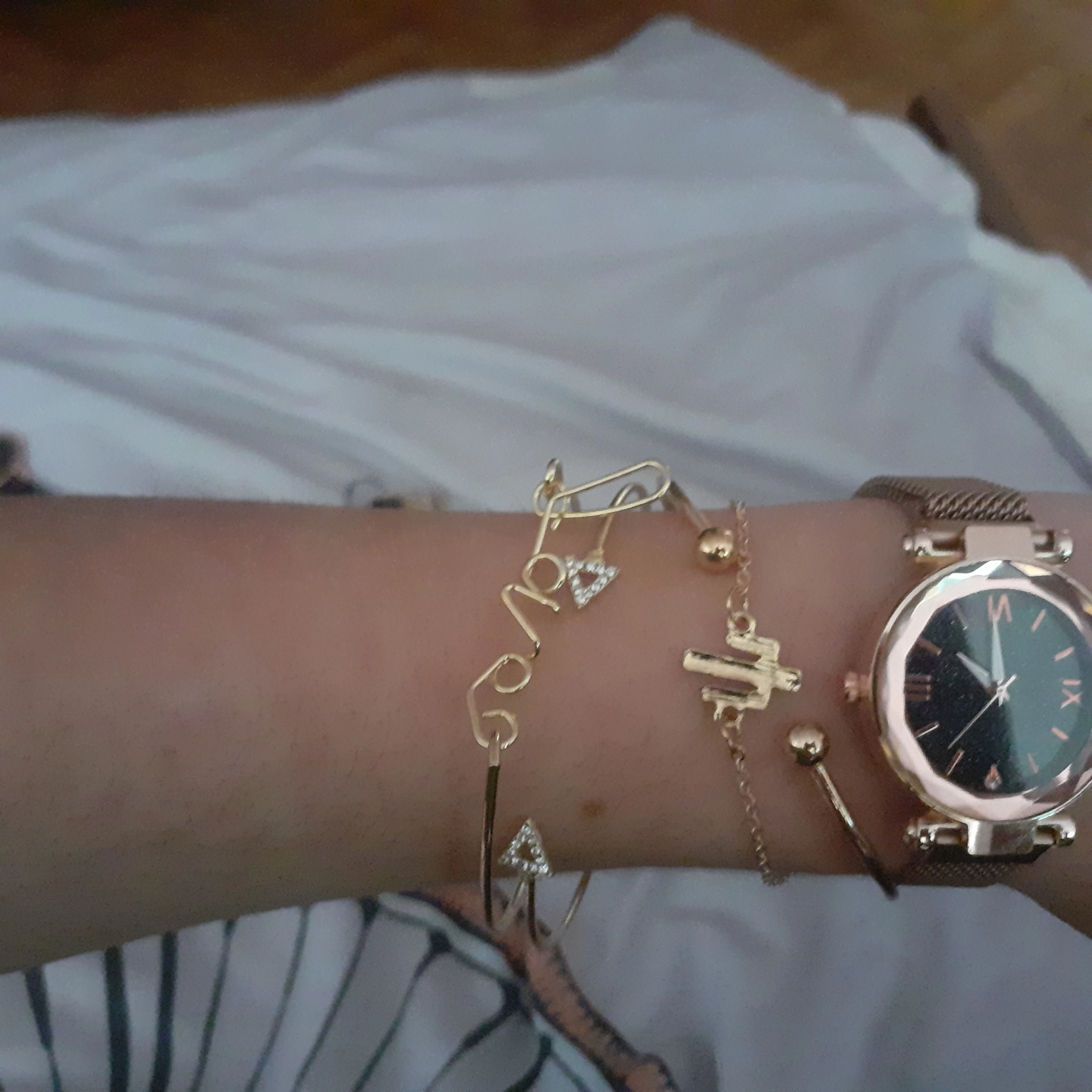 Часы по цвету пришли те, браслеты все в наборе, но один браслет был поломан, но это не так критично, потому что заказывала всё-таки из-за часов. Будьте внимательны, когда отправляете людям товар
