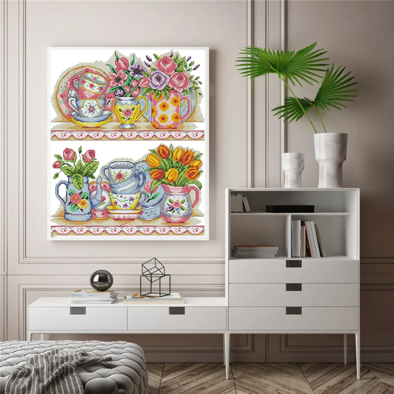 Ваза на полке, Набор для вышивки, ручной работы, домашний декор, печать на холсте, 14CT, 11CT, наборы для вышивки крестом