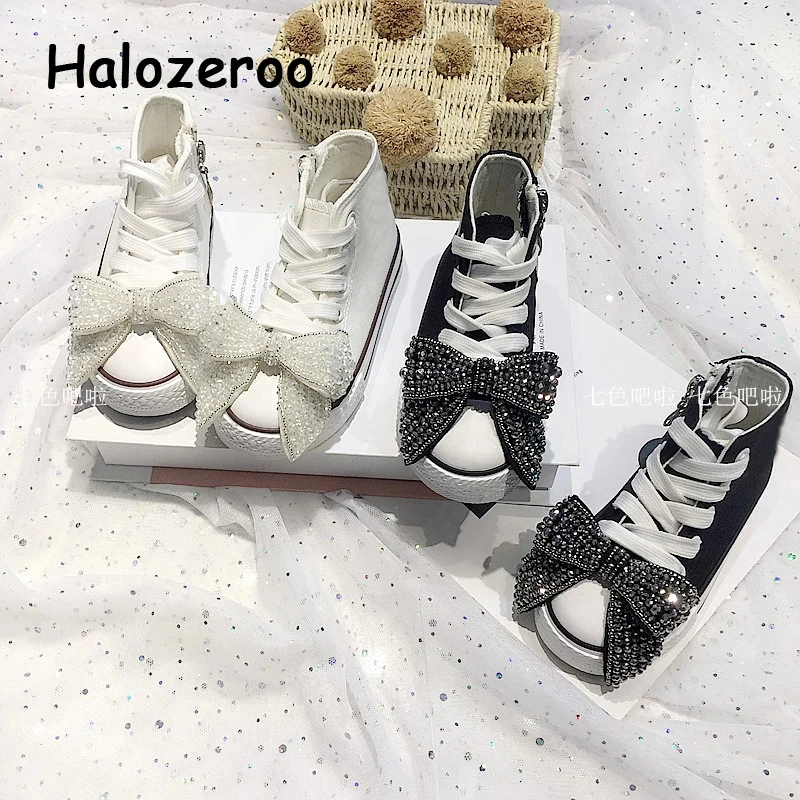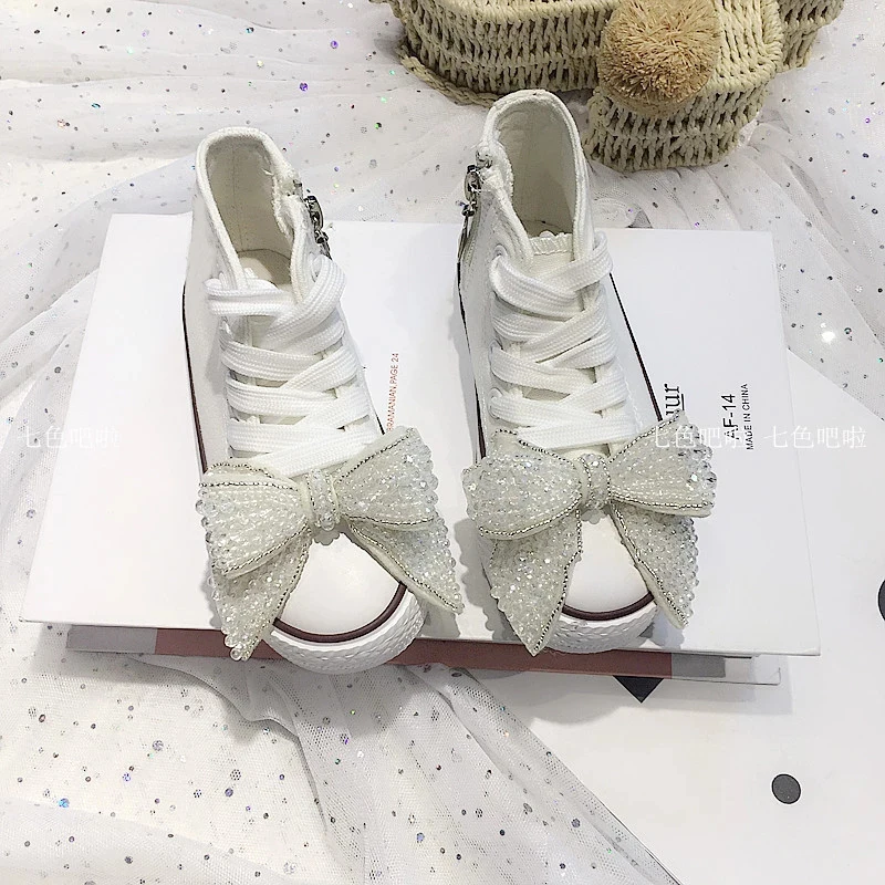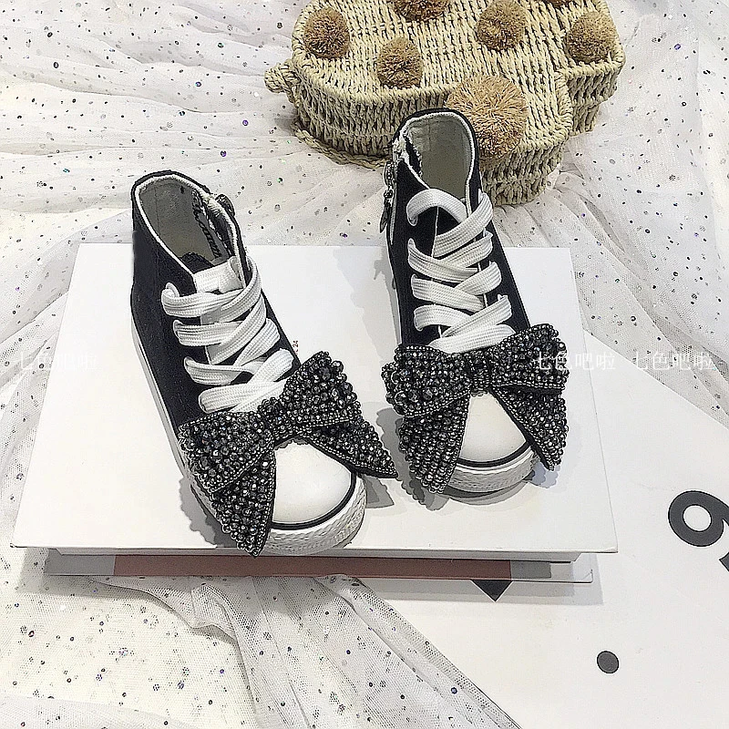 Новое Осеннее детское платье с рисунком на резиновой подошве в повседневном стиле для маленьких девочек с бантом; Платье парусиновая обувь Стразы кроссовки для маленьких девочек; Брендовая; Высокие кроссовки; Спортивная обувь