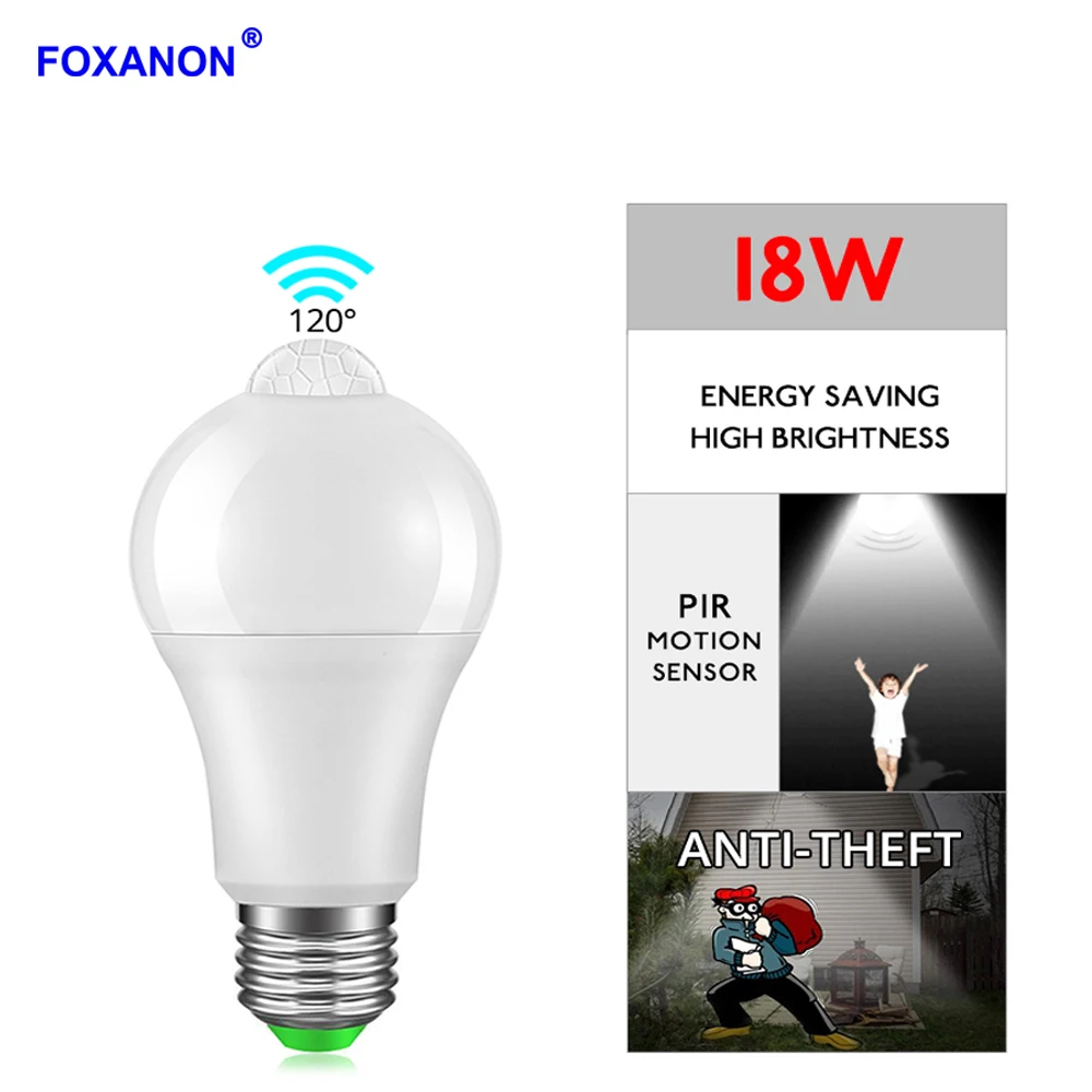 Foxanon E27 светодиодная лампа 12 Вт 15 Вт 18 Вт 20 Вт с пассивным инфракрасным датчиком Светодиодный лампа-кукуруза для дома, спальни, ночсветильник, украшение люстры