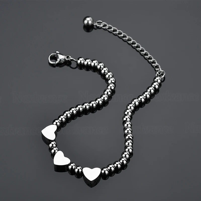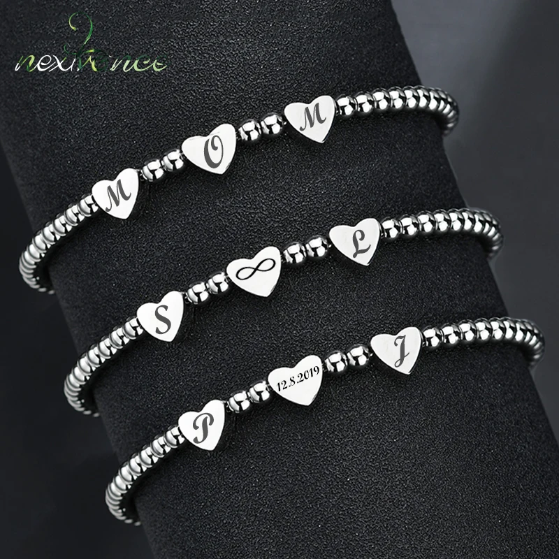Браслет Nextvance из нержавеющей стали с гравировкой, с именной датой, сердечком, бусинами, для женщин и девушек, подарок на день рождения, сделай сам