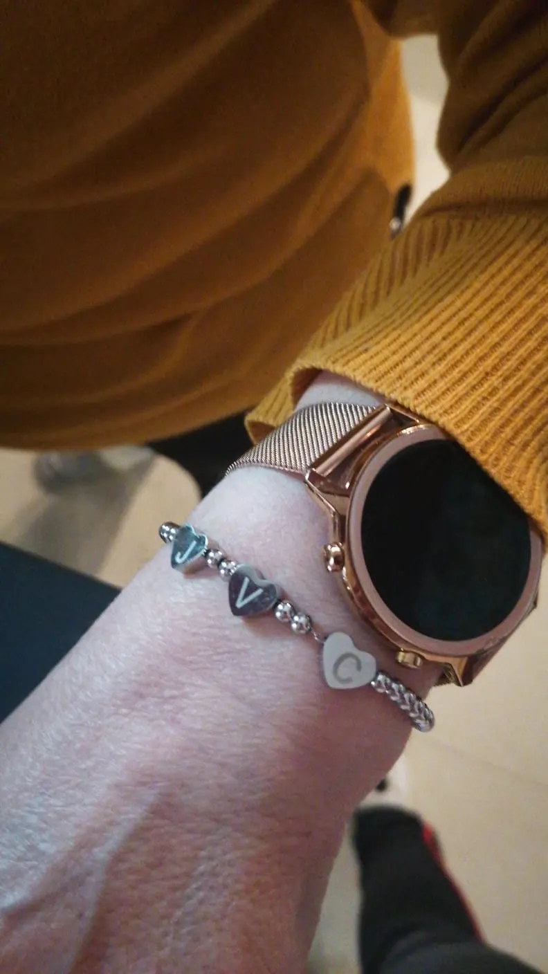 Красиво, я уже купил у них больше, доставка в 10 г на Сицилии, гравировка идеальна, это просто отлично подходит для моего запястья, но я разрешил соединяться между шариками, уникальный дефект, слишком деликатный, вы поцарапаете через несколько часов, как вы видите в букве M