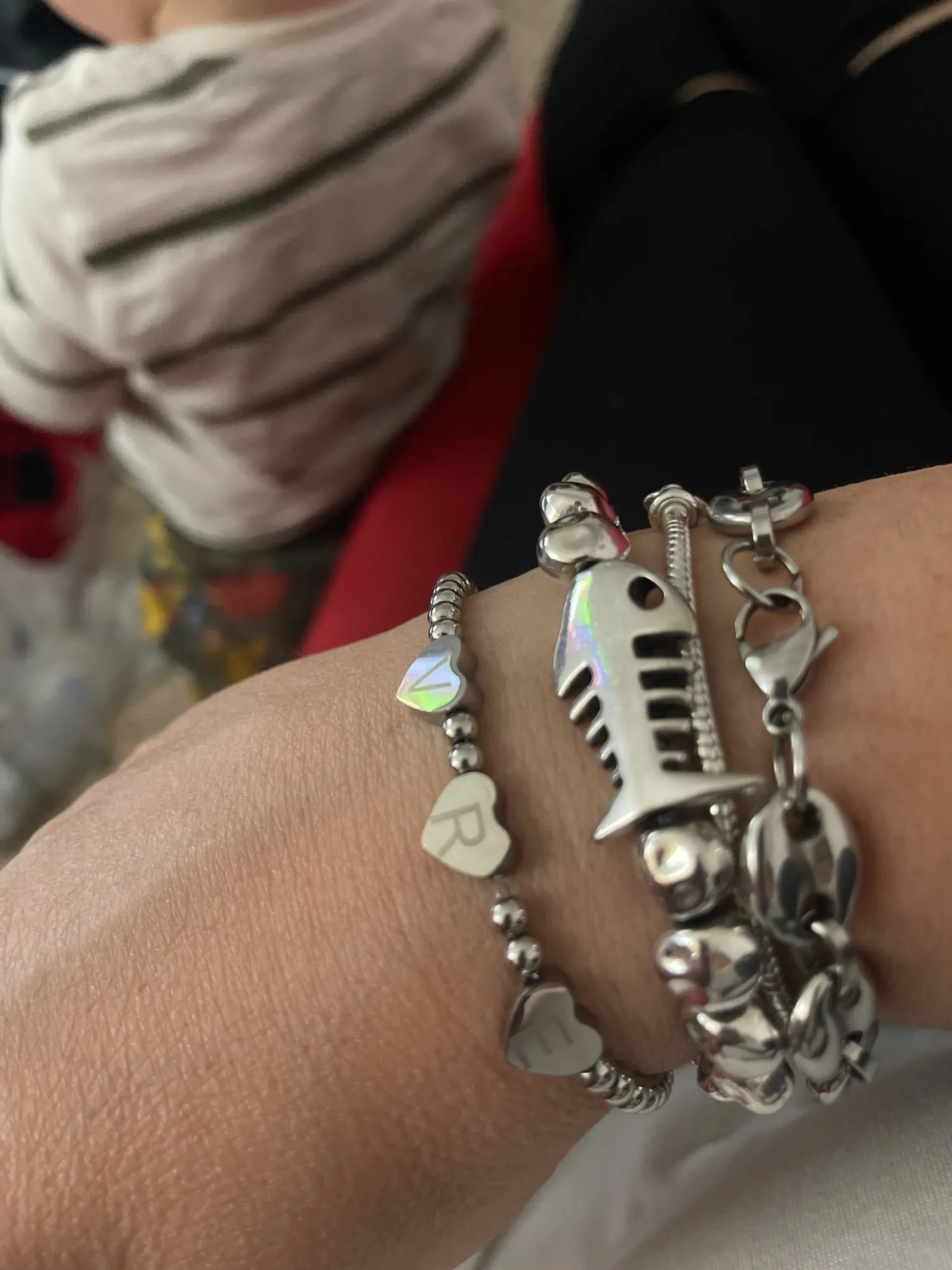 браслет классный но продавец сделал не то что я просила. хотя с ним списывались 3 раза. прлсила шрифт везде одинаковыц , в итоге на 2 сердцах одинаковый 6а третьем другой