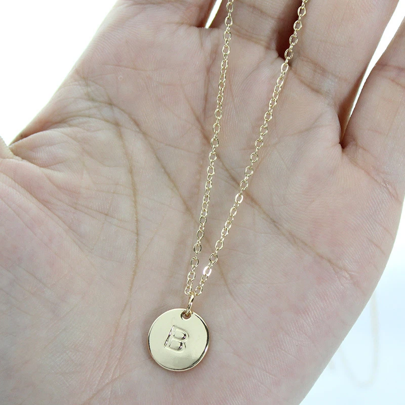 Ожерелье с подвеской с буквами инициала 2022 для женщин, милое круглое ожерелье из сплава с гравировкой и блестками золотого цвета