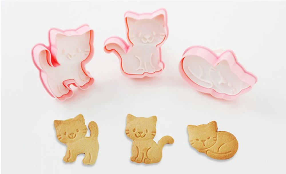 3 шт.компл. формы для печенья с милым котом, резак для помадки, резак для печенья, торта, Кондитерская форма для украшения кухни, сделай сам, принадлежности для выпечки