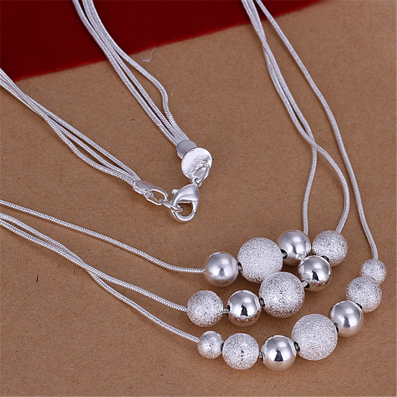 Ожерелье-цепочка женское из чистого серебра 925 пробы, 3 слоя бусин
