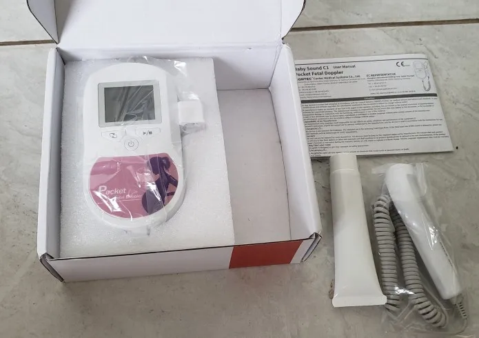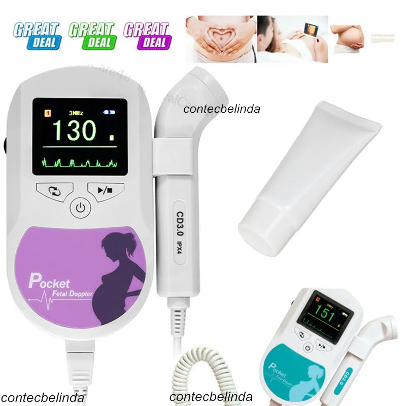 Карманный фетальный допплер Contec с цветным ЖК-экраном, пренатальный сердечный монитор, 3 МГц зонд, Бесплатный гель, розовый цвет, новинка 2021