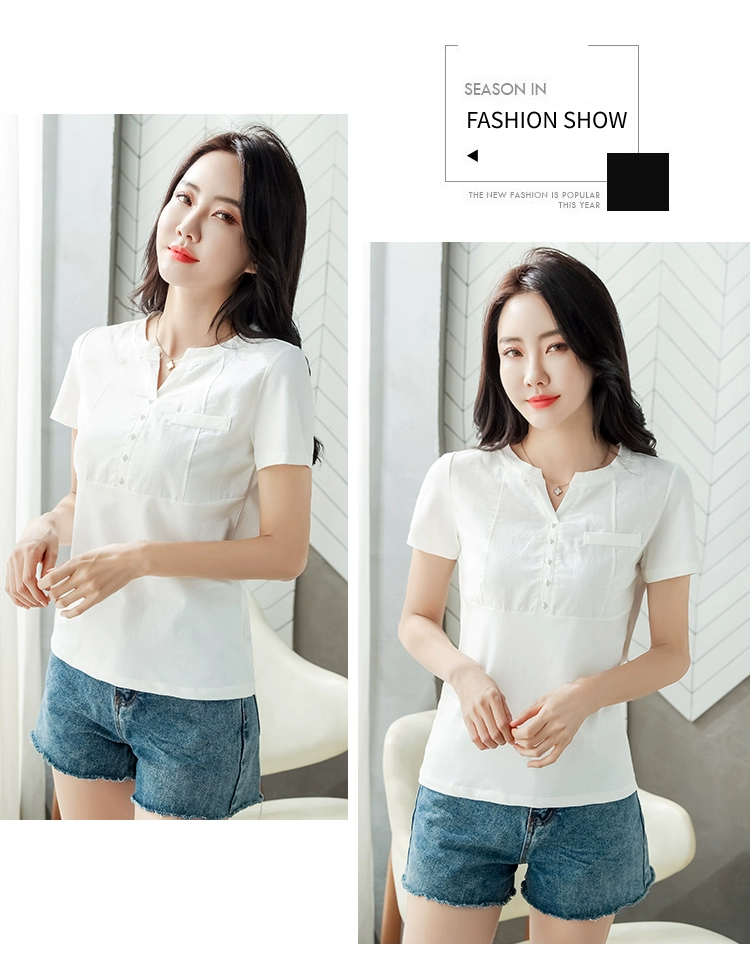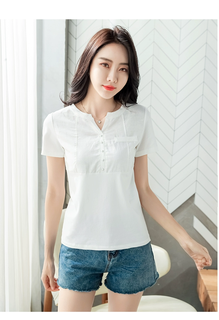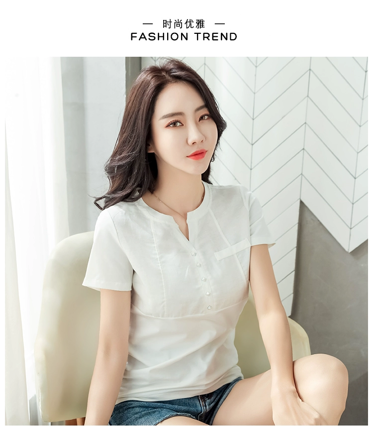 Женская хлопковая блузка с V-образным вырезом, белая облегающая блузка, размеры до 3XL, лето 2022