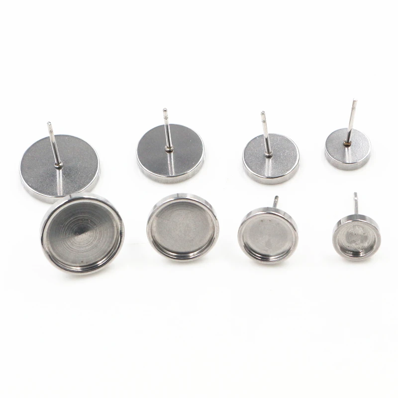 (Никогда не выцветает) 6, 8, 10, 12 мм, 10 шт.лот, утолщенные серьги из нержавеющей стали, пустыебазовые серьги, подходят для 6, 8, 10, 12 мм стеклянных кабошонов
