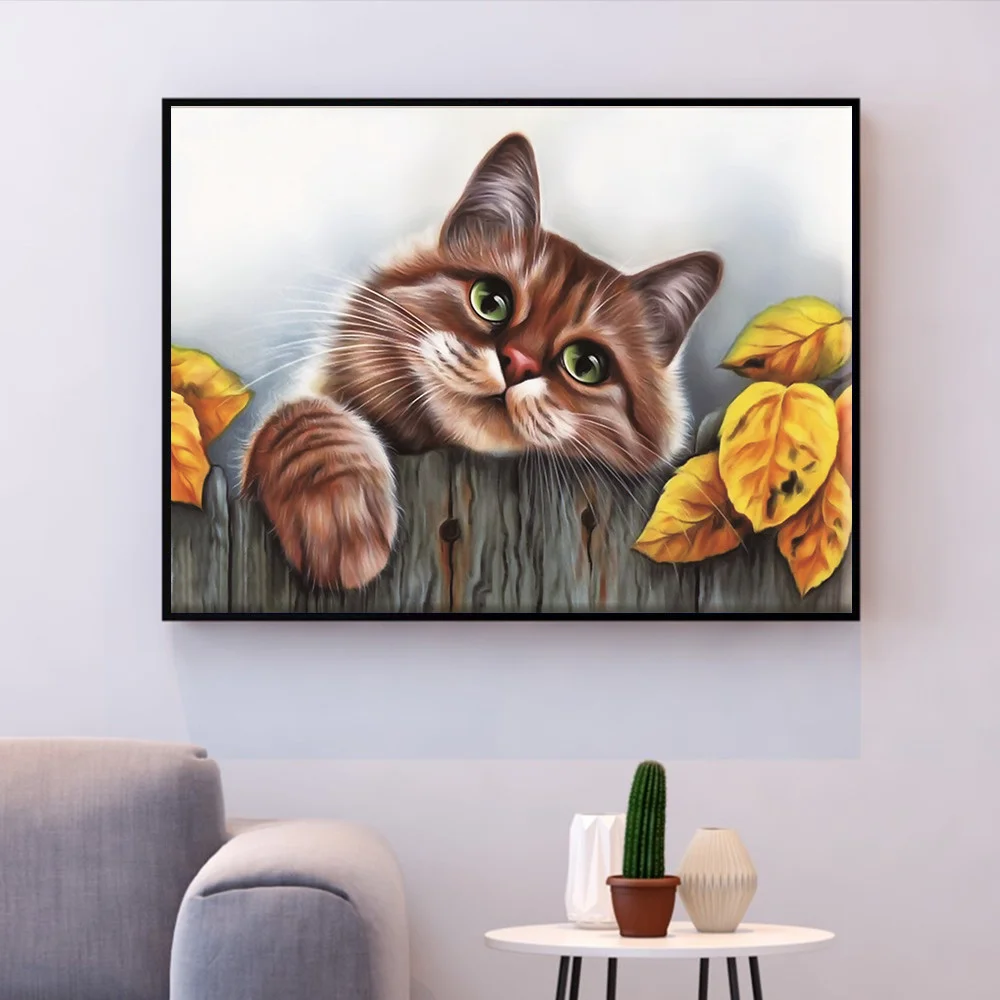 HUACAN вышивка крестиком Кошка Животное рукоделие Наборы для полных...