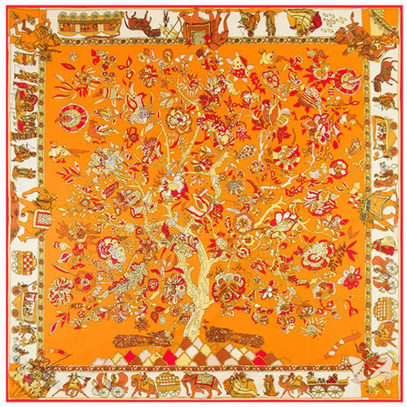 100% шелковый шарф для женщин, Большие шали, палантины с принтом Древа Жизни, квадратные шарфы, Echarpe, модные женские банданы 130*130 см