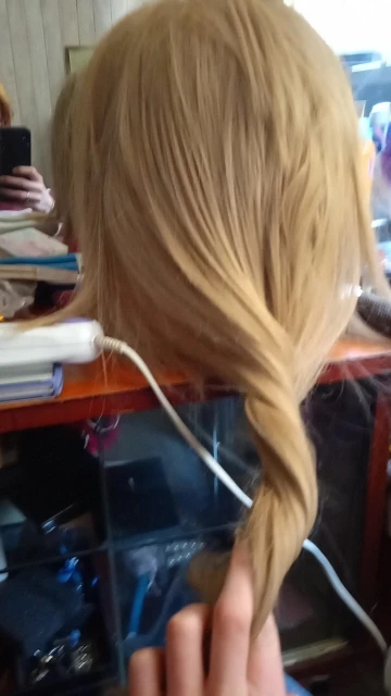 Сразу отпишу, что фото после его распремления. парик так себе. приехал мятый. все мои попытки его причесать ни к чему не привели. Макушка выглядит как мочалка. помимо этого он стриженный, т. е. пере формировать эти кудри как-то иначе вы не сможете. попробовала его распрямить - выпрямился, но вид все равно не очень. Думаю, может подстричь, чтоб хоть как-то смотрелся. Из достоинств хочу отметить не слабую густоту и приятный цвет. выглядят натурально, но пересушенно. на 3м фото видео густоту хвоста, но половина волос до него даже не доходит. А жаль, что не подошел. так хотелось химию, но свои волосы не портить. Но на всем Алике нет такого парика. парик ОЧЕНЬ густой, даже несмотря на стриженность