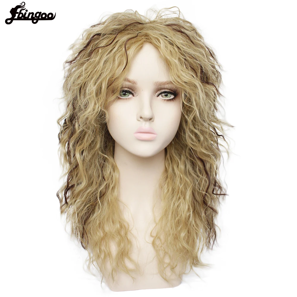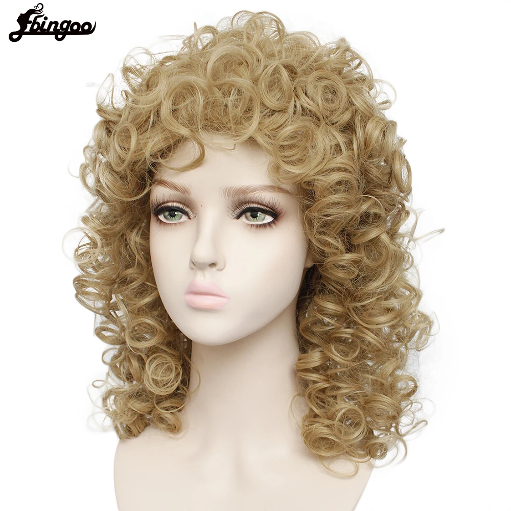Ebingoo 70s 80s диско Хеллоуин качающийся парик короткий вьющийся Золотой Блонд синтетический парик для женщин ролевые Вечерние
