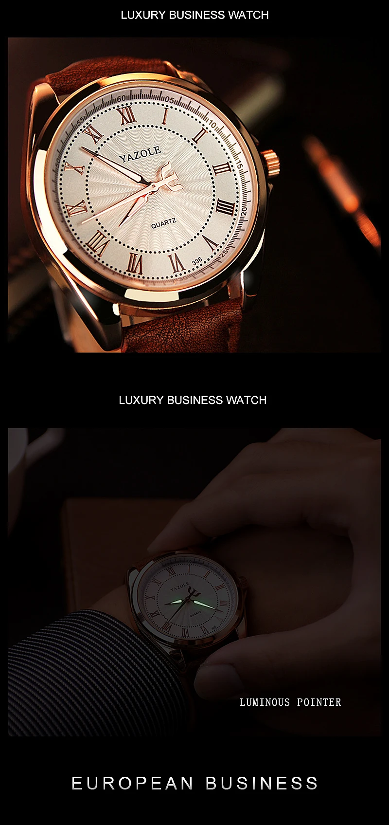 YAZOLE 336 мужские часы деловой моды кожаный ремешок кварцевые мужс...