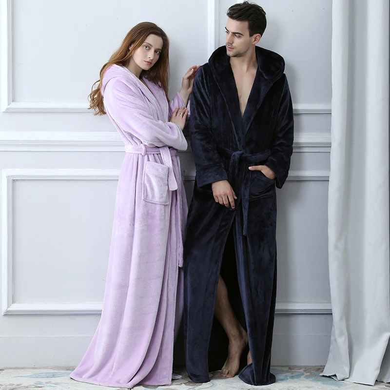 Халат флисовый мужской, утепленный, длинный, с капюшоном, 40-размера плюс кг, цвет в ассортименте, 120