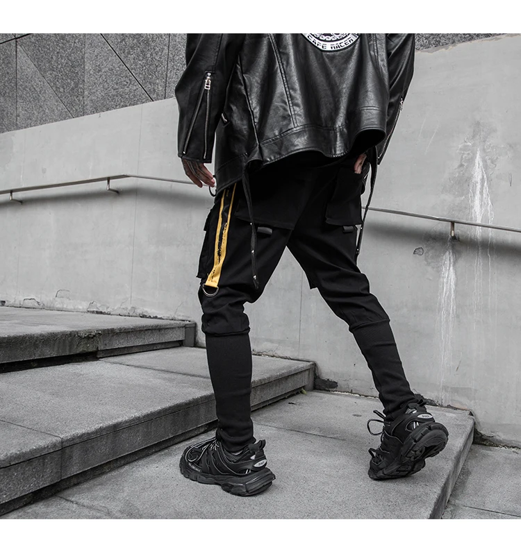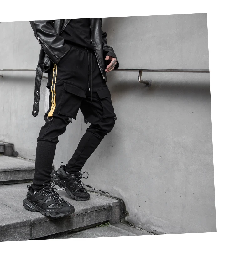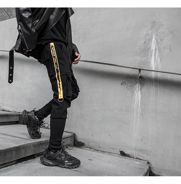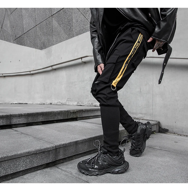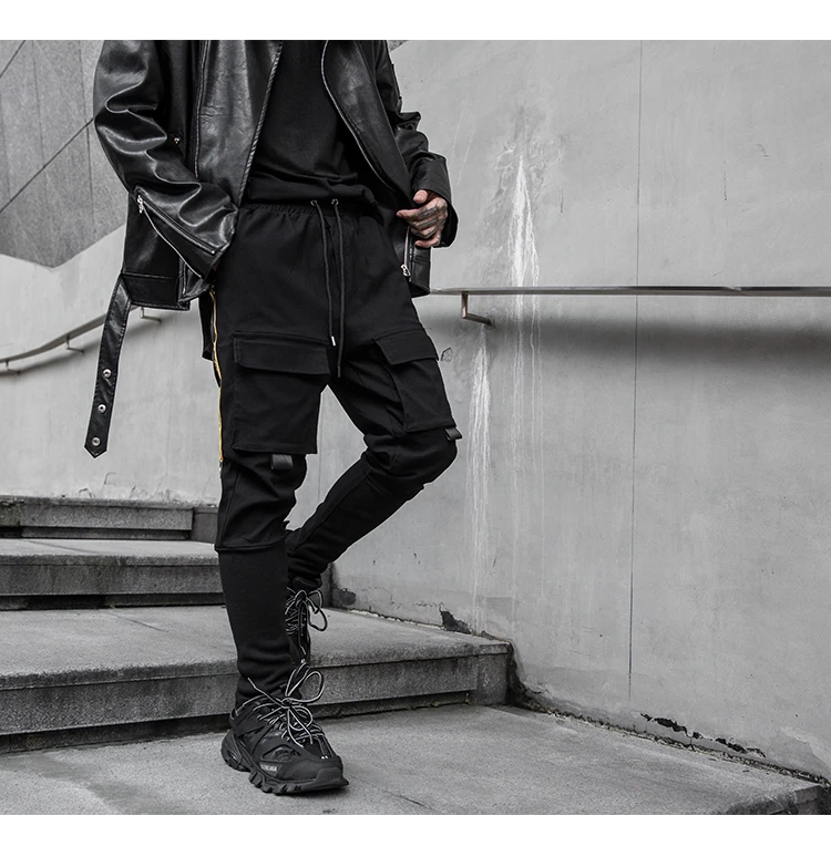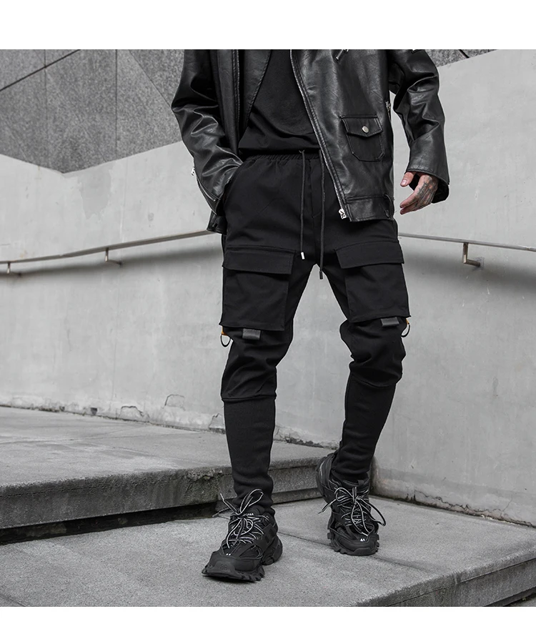 Брюки-карго мужские в стиле хип-хоп, облегающие брюки-карго с боковыми карманами, джоггеры, модные длинные брюки-карандаш в темном стиле