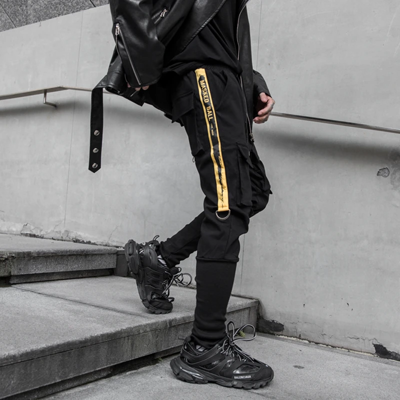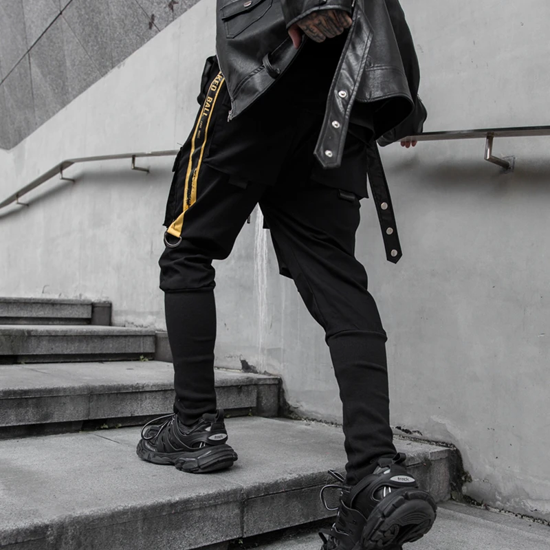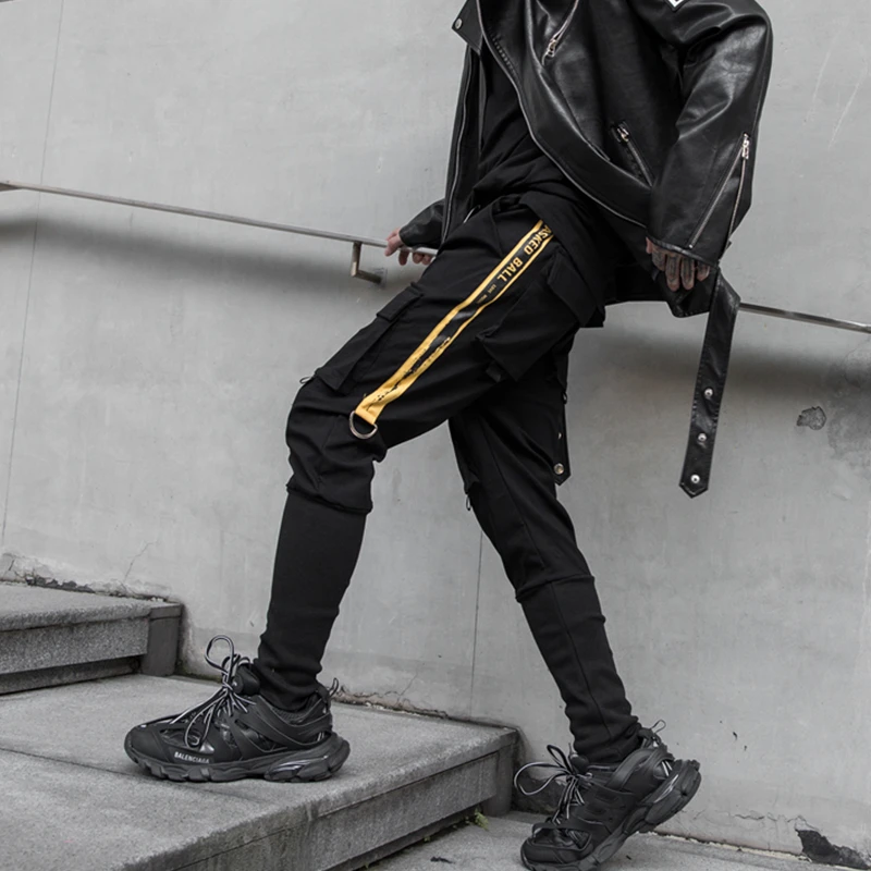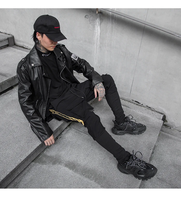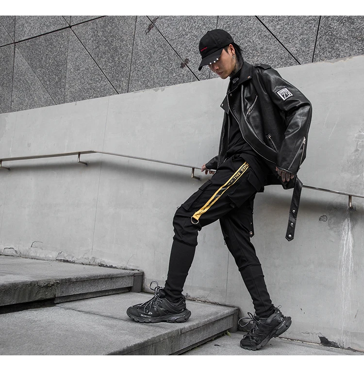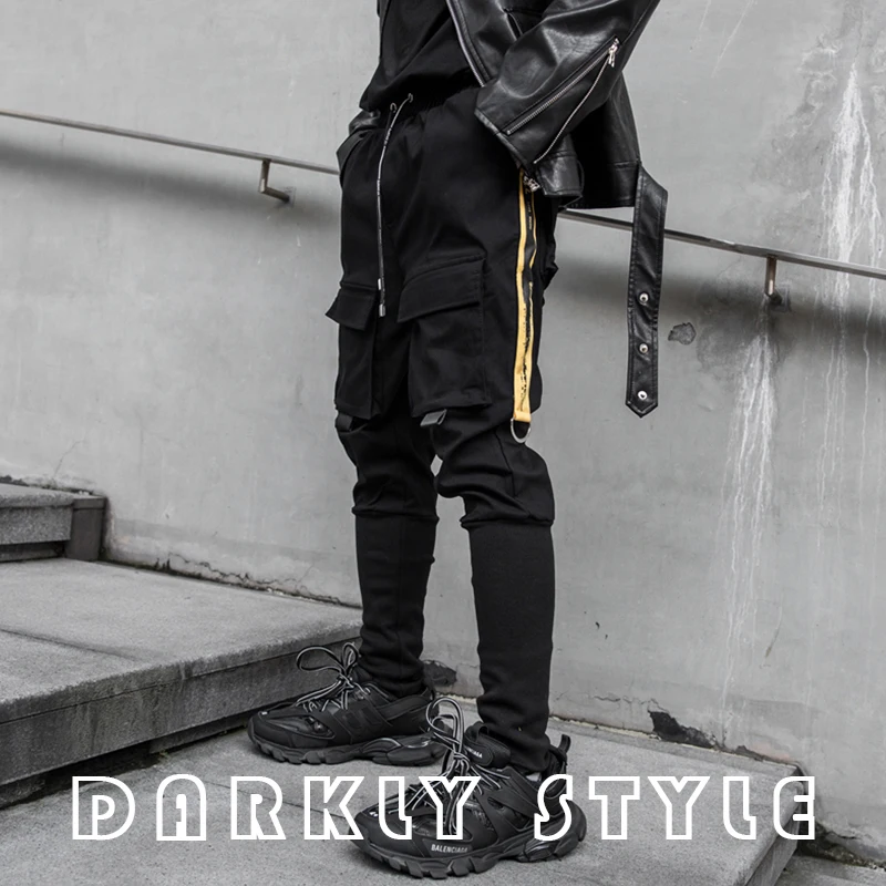 Брюки-карго мужские в стиле хип-хоп, облегающие брюки-карго с боковыми карманами, джоггеры, модные длинные брюки-карандаш в темном стиле