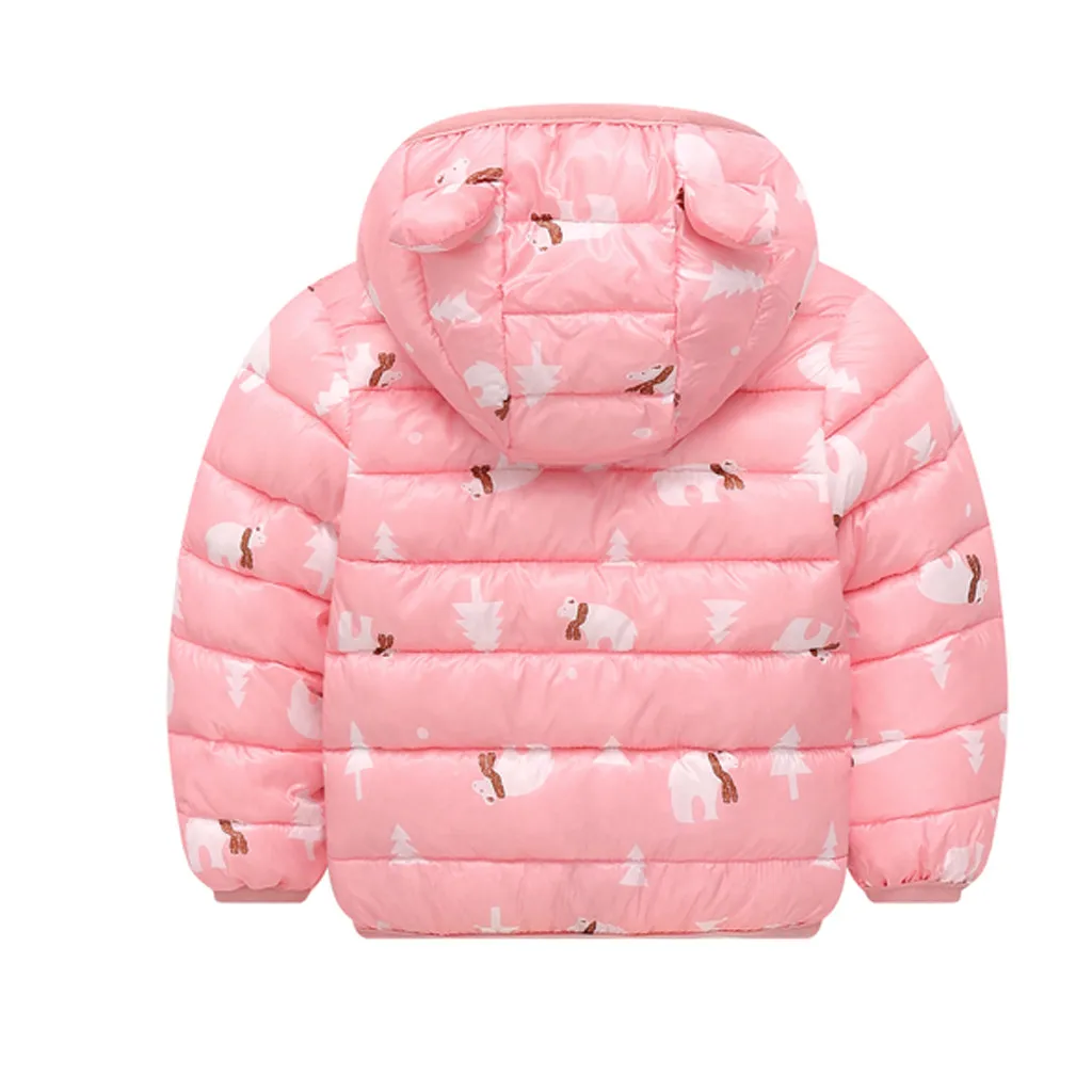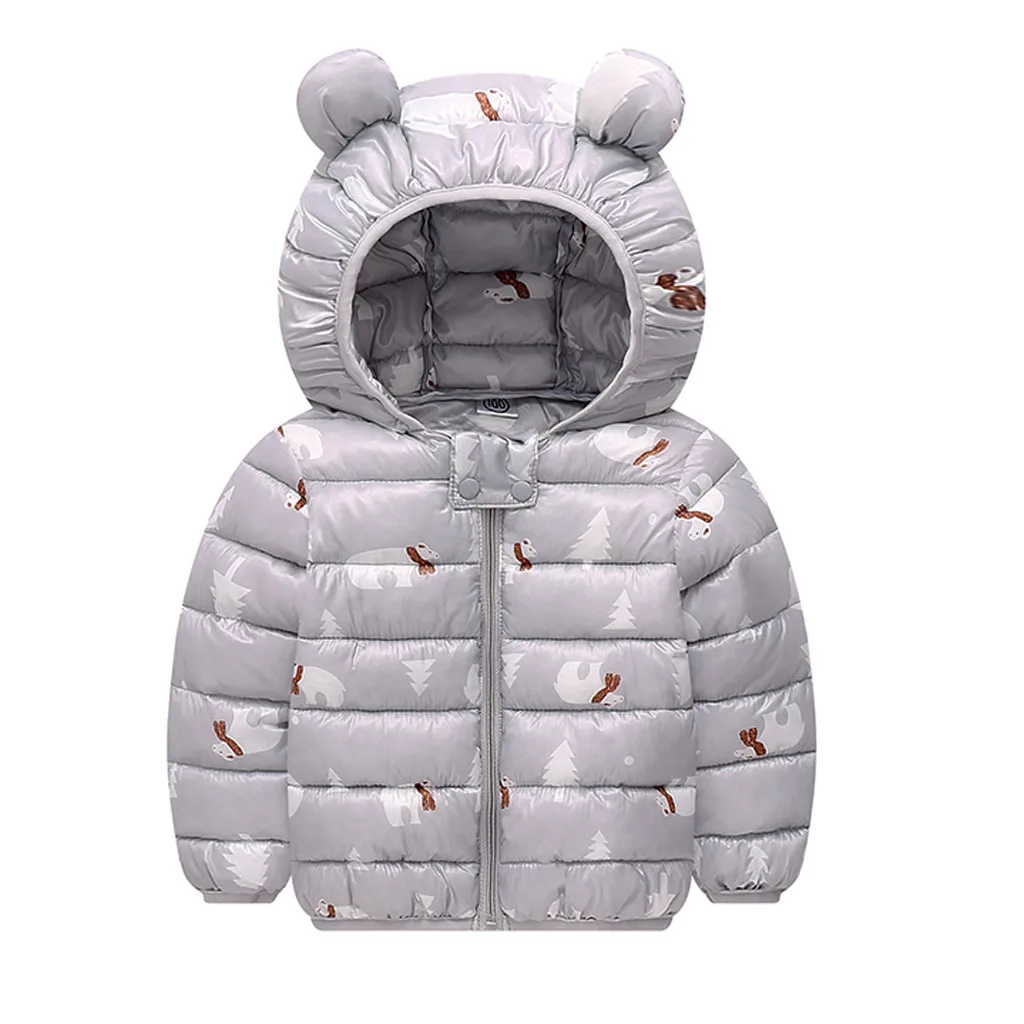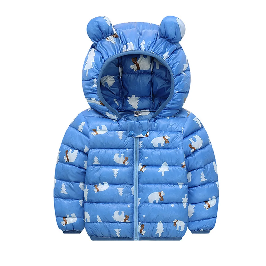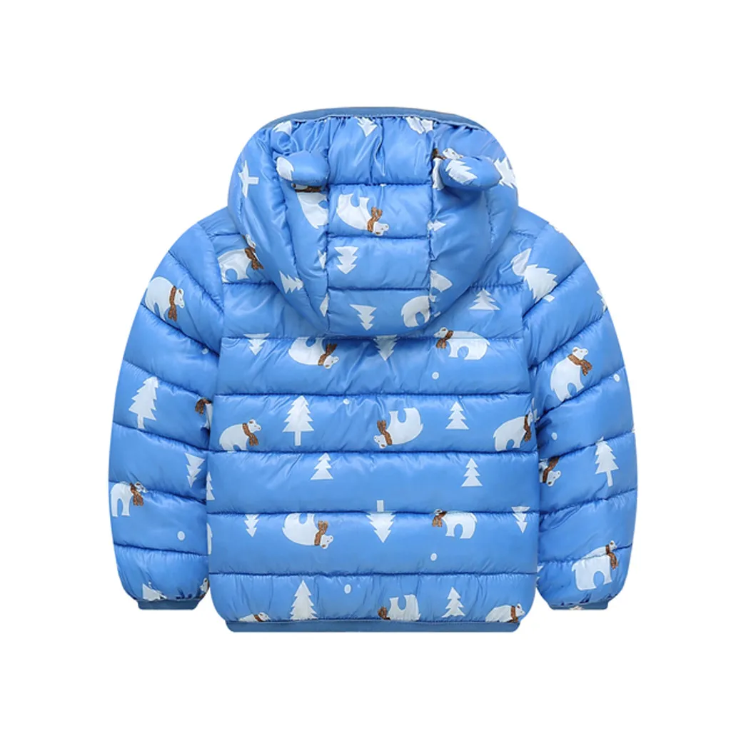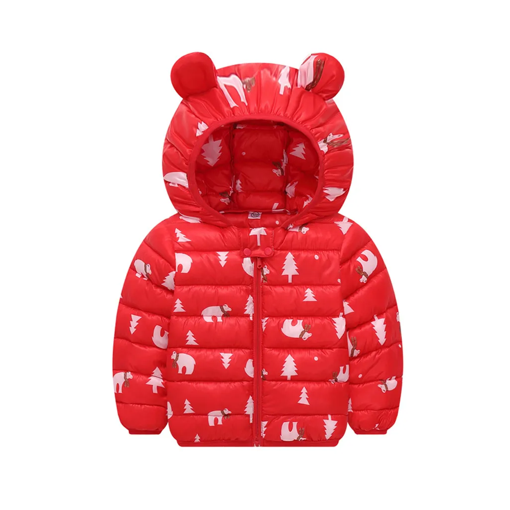 Детское зимнее пальто для мальчиков и девочек, детское теплое пальто с принтом, Детская пуховая куртка на молнии с толстыми ушками, зимняя толстовка, Одежда для новорожденных, # g4