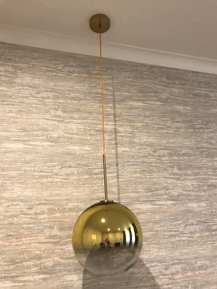 Если выбрать комплект из 3 ламп, Потолочная пластина будет 40 см круглой потолочной плиты.Черная Потолочная пластина и черная проволока для серебряного шара.Золотая Потолочная пластина и Золотая проволока для золотого и прозрачного шарика.