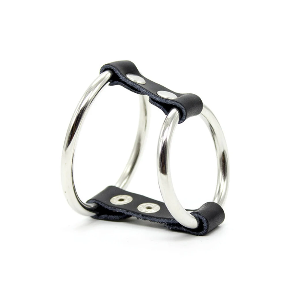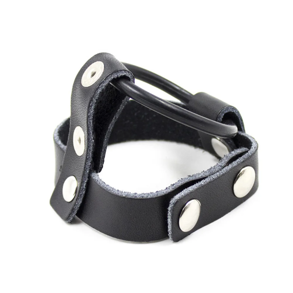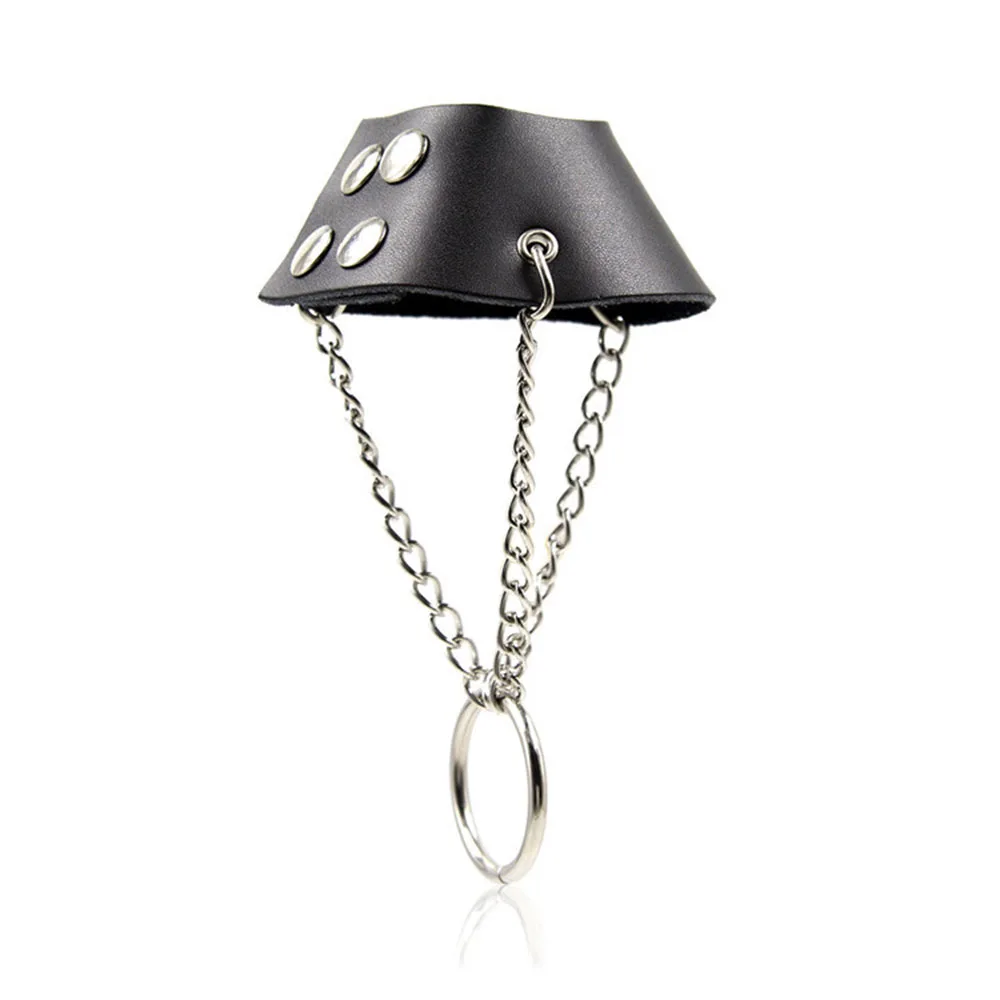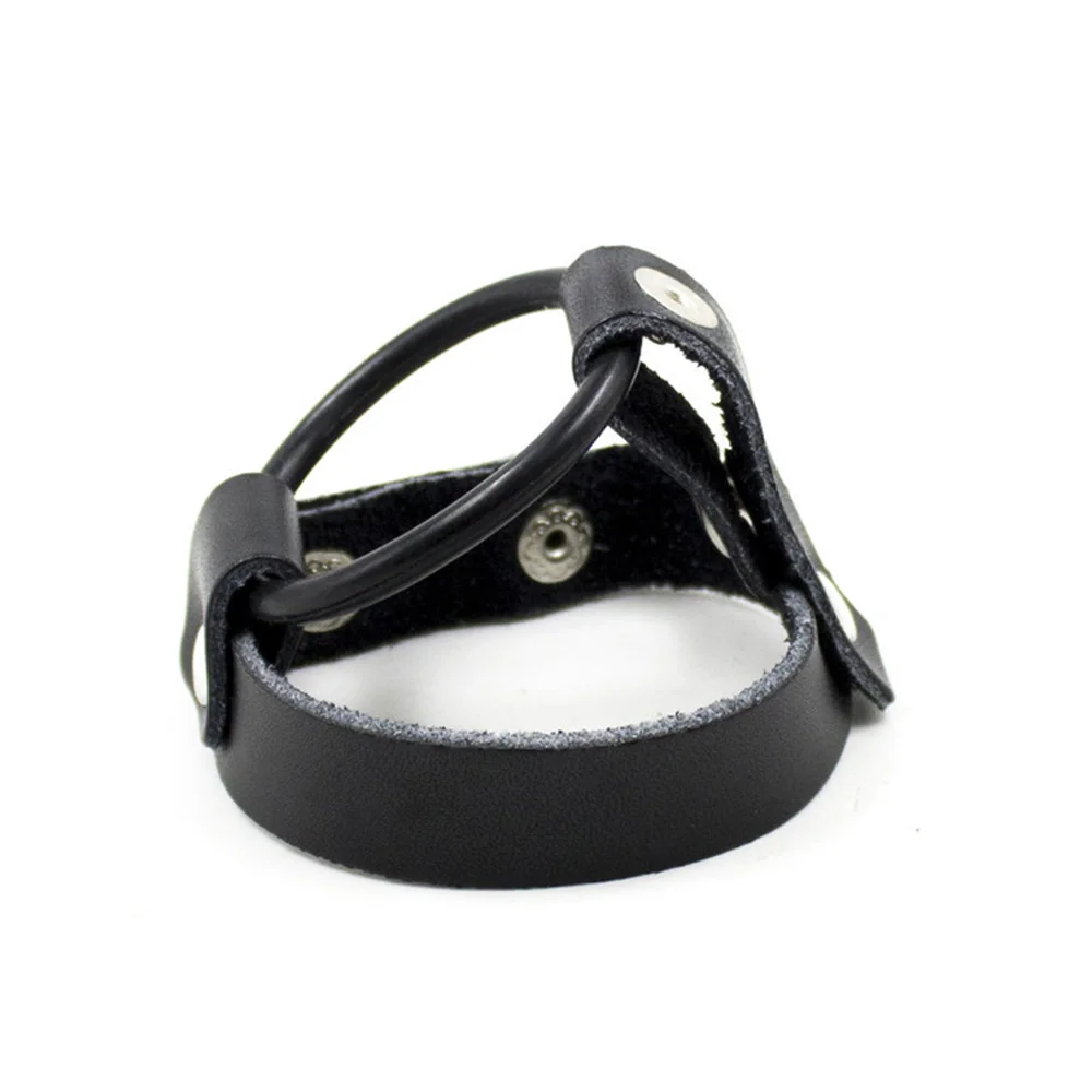 Кольцо на пенис кожаное удерживающее пенис рукав + металлическое ко...