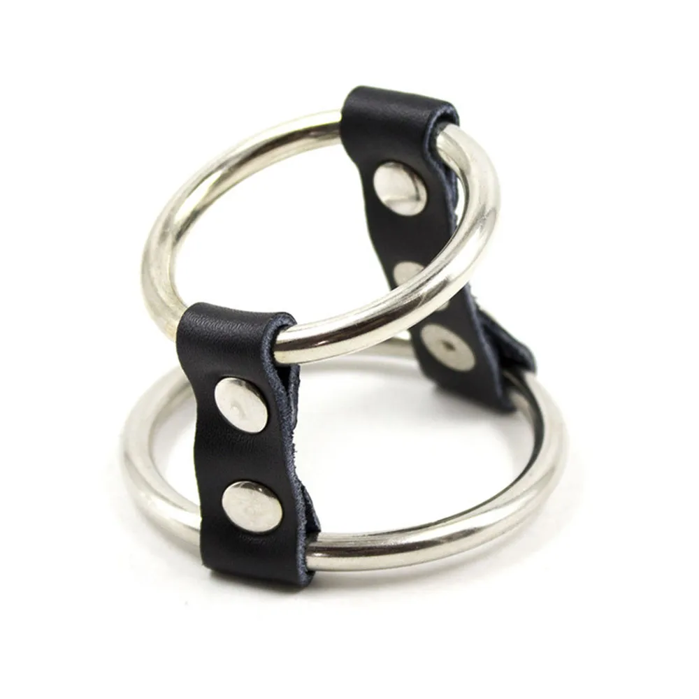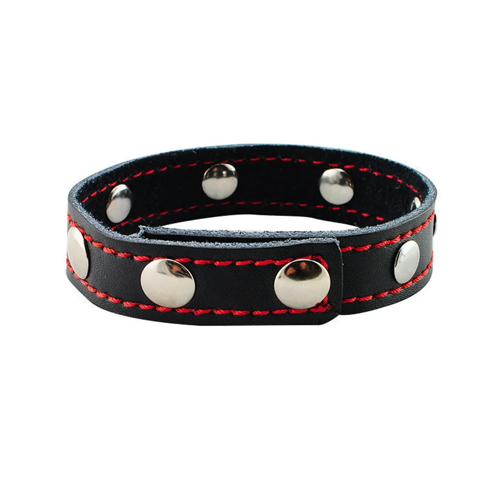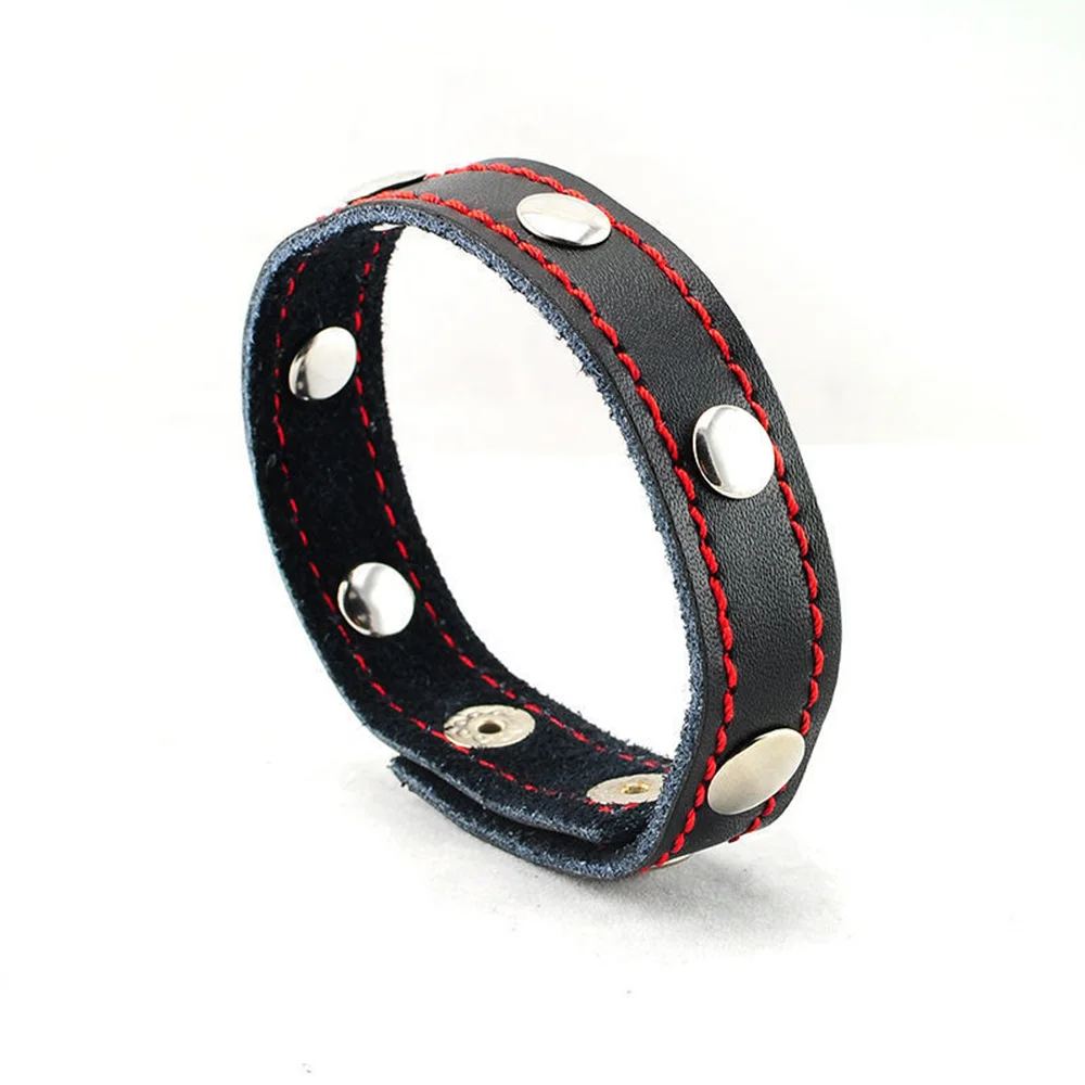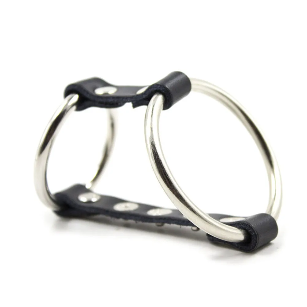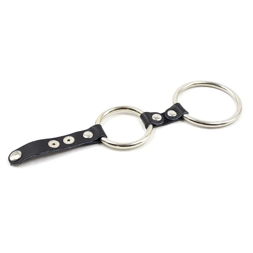 Кольцо на пенис кожаное удерживающее пенис рукав + металлическое ко...