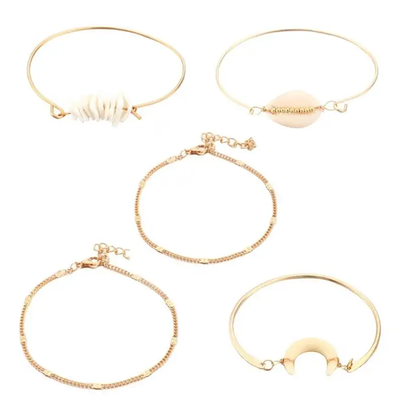 5 шт.компл. Boho Shell Moon Chain браслет этнический браслет пляжные украшения подарок для женщин Boho кисточкой бисерный браслет ювелирное изделие оптовая продажа