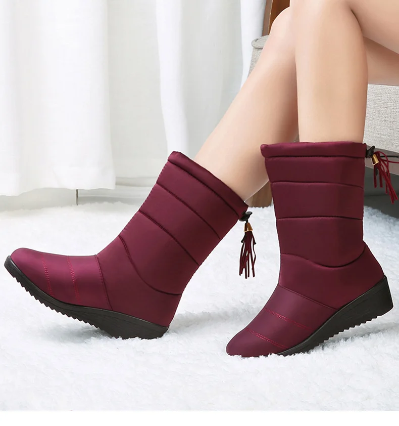 Женские зимние сапоги, водонепроницаемые, теплые, на каблуке