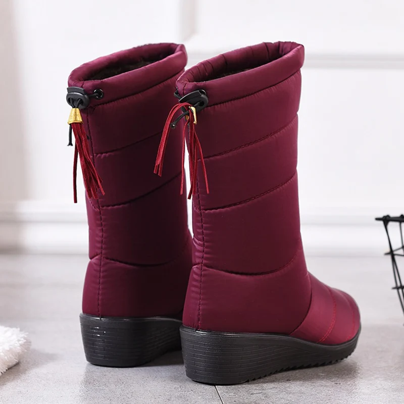 Женские ботинки 2019, зимние ботинки до середины икры, зимние ботинки на танкетке и каблуке, женская зимняя обувь, женские теплые меховые ботинки на платформе больших размеров 44