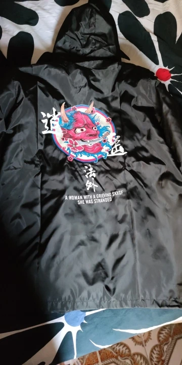 Неплохое качество самой куртки, рисунок - наклейка, будем надеяться, что не отклеится слишком быстро. По размеру подошло, на европейский размер L, заказали 4XL. Из минусов - очень, очень долго шло.