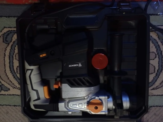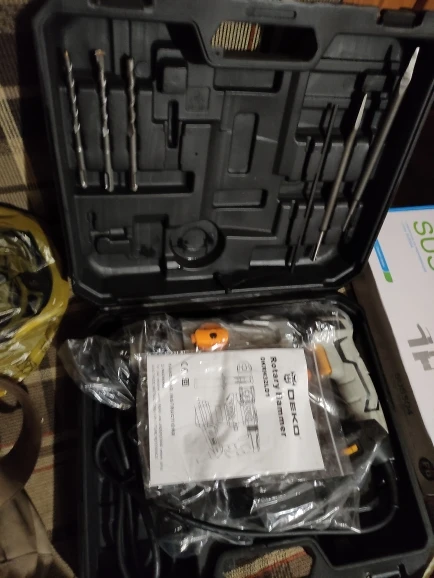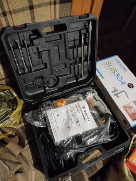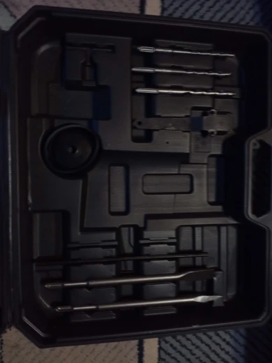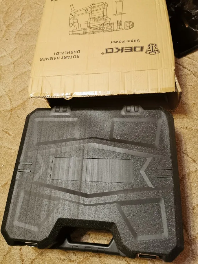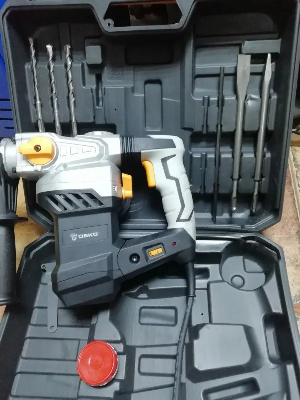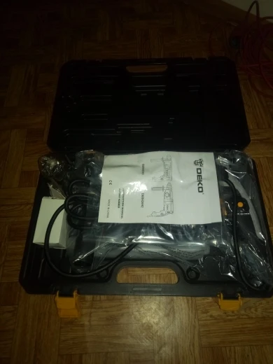 солидный такой перфоратор!!! пришел в кейсе немного хлипковатом, с повреждениями♂️в районе ручки, на фото с инструкцией видно. Внутри доп.приспособления, но по кейсу понимаешь, что бывает комплектация ещё лучше! соотношение цена-качество очень хорошее.
