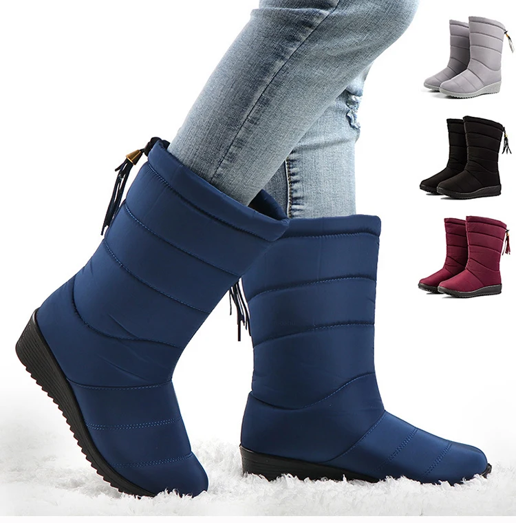 Женские ботинки 2019 г., женская теплая зимняя обувь на меху женские зимние ботинки водонепроницаемые теплые зимние сапоги до середины икры женская обувь