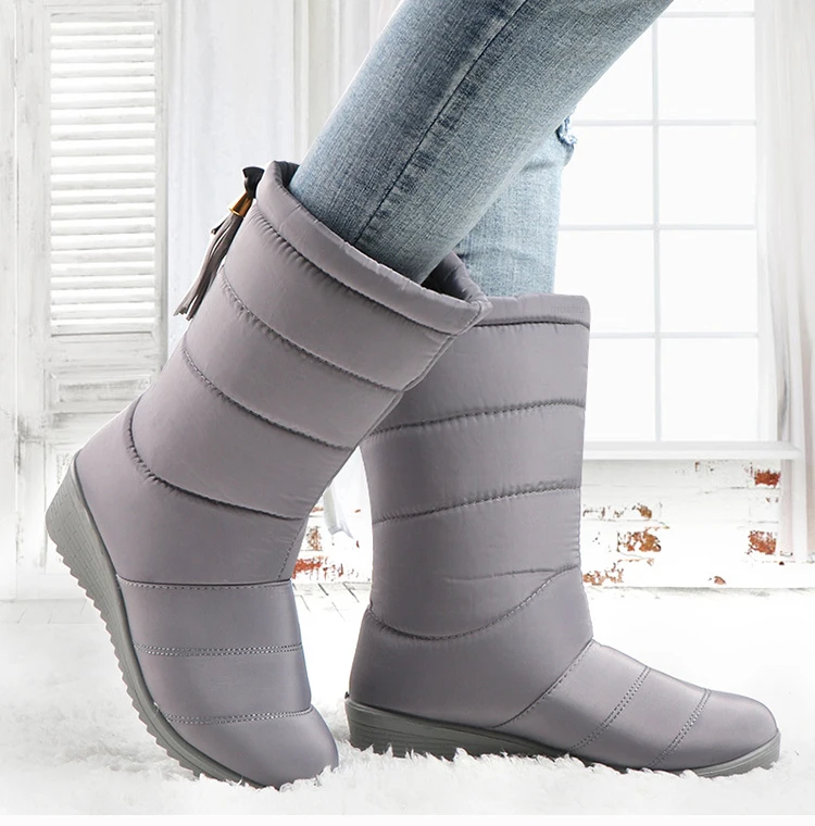 Модные водонепроницаемые зимние сапоги, женские сапоги до середины ...